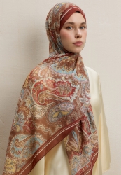 DARK BOHEMY DESEN İPEK KREP ŞAL KİREMİT