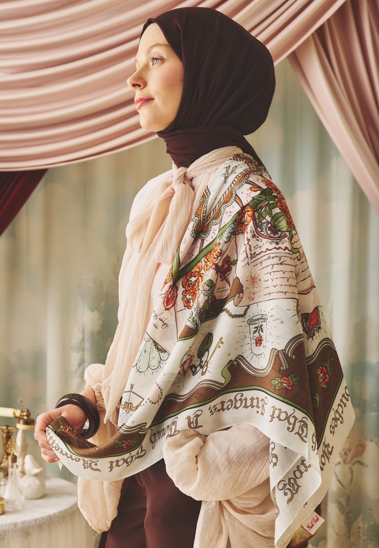 Doğal yapısı, akışkan duruşu, ipek hissi veren ve nefes alabilen dokusu ile gün boyu konfor sağlayan viskon kumaşı, masal dünyasından ilham alınan romantik desenler ile buluşturan Letters Of Pure Love Eşarp Koleksiyonu, her eşarbı eşsiz bir hikaye ile size sunar.