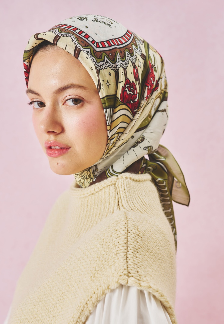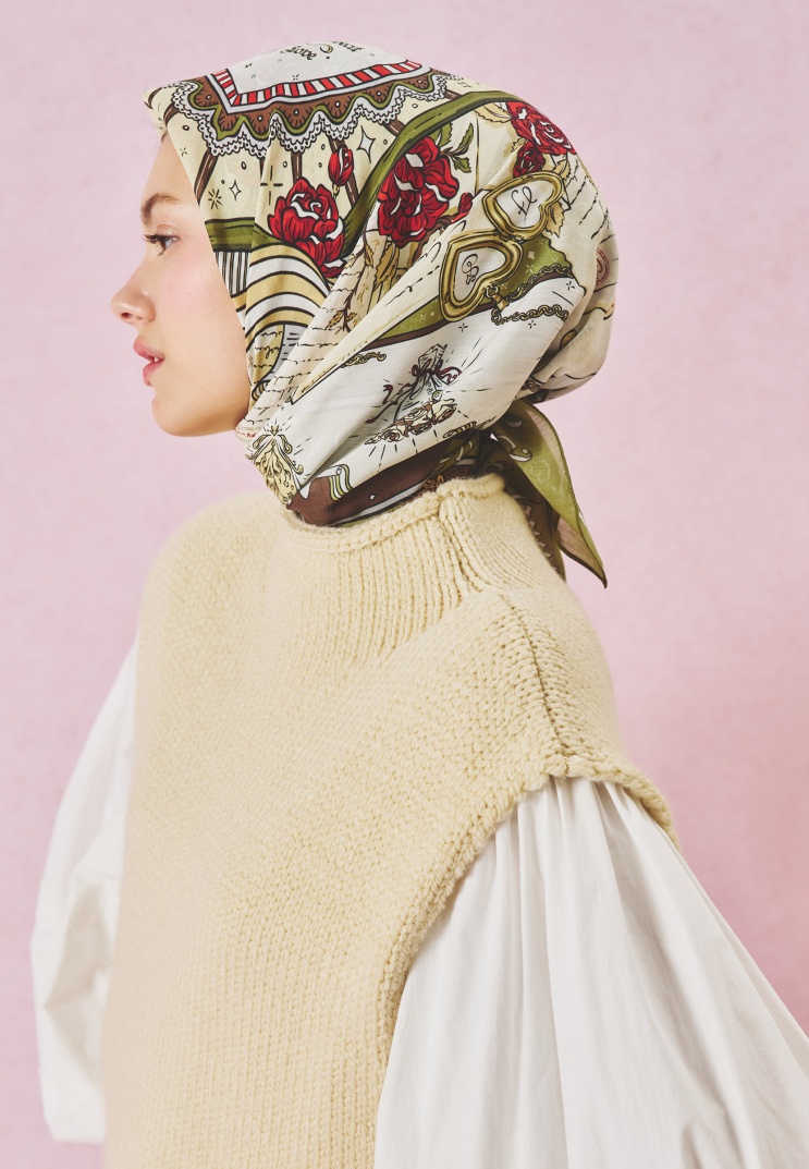 Doğal yapısı, akışkan duruşu, ipek hissi veren ve nefes alabilen dokusu ile gün boyu konfor sağlayan viskon kumaşı, masal dünyasından ilham alınan romantik desenler ile buluşturan Letters Of Pure Love Eşarp Koleksiyonu, her eşarbı eşsiz bir hikaye ile size sunar.
