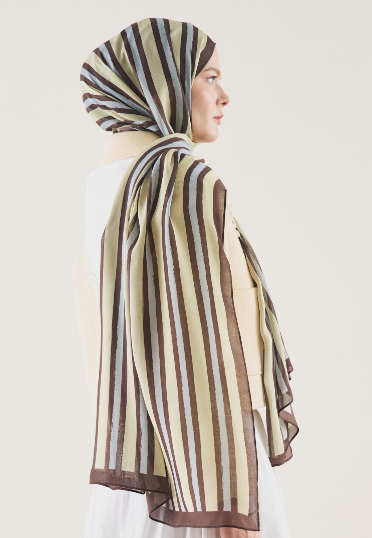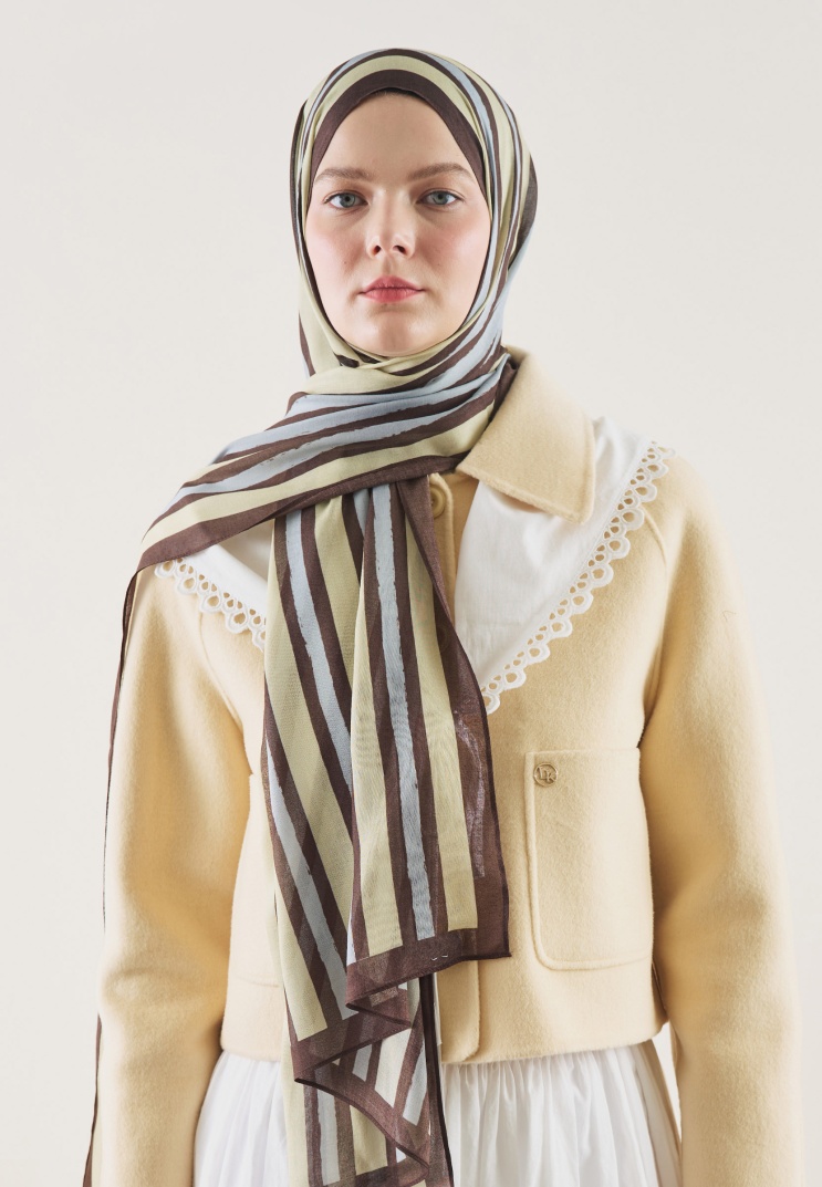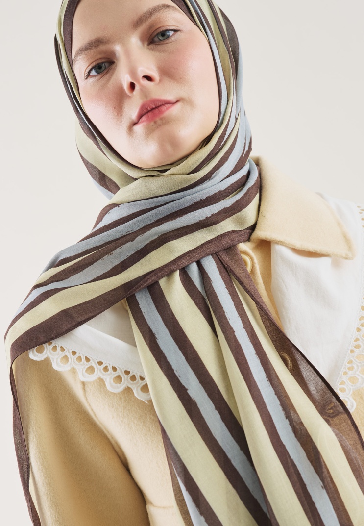 BLOCK STRIPE DESEN RAMİ ŞAL KAHVE