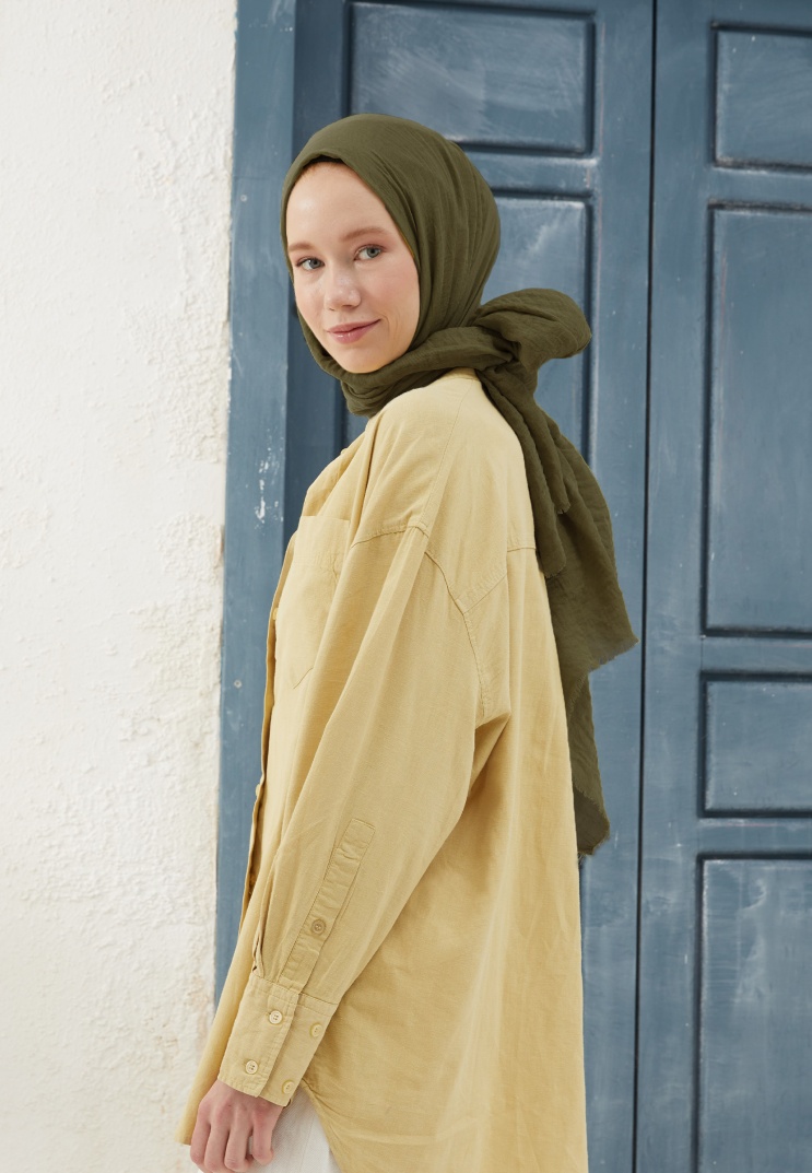 Kumaş türü pamuk viskondur. Mevsimlik kullanıma uygun ütü gerektirmeyen, kolay şekil alan bir yapısı vardır. Geniş ebatları sayesinde iç göstermez. Ölçüleri 90 X 180 cm İçerik %100 Kesik Elyaf Elde, soğuk suda ayrı yıkayınız. Düşük ısıda sererek kurutunuz.