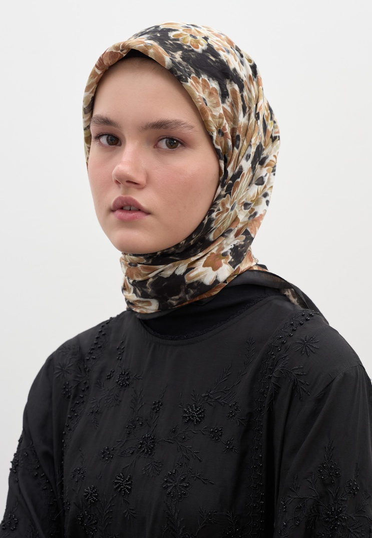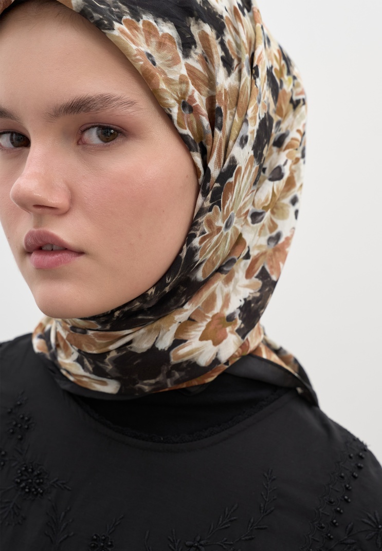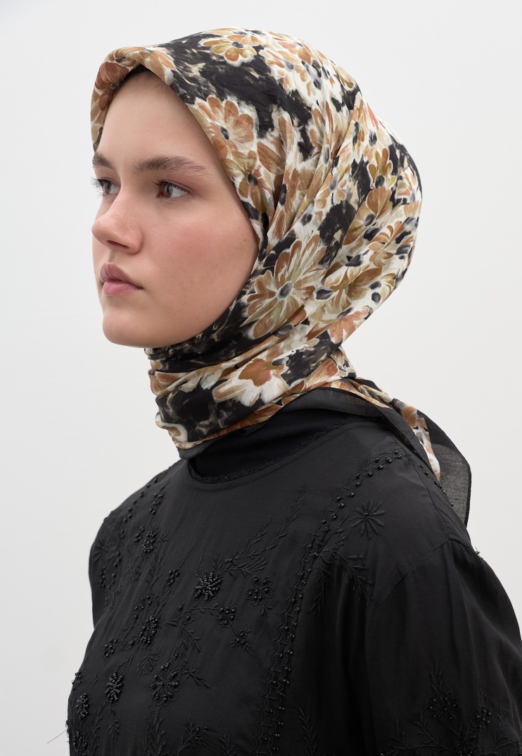 CHERRY BLOSSOM PATTERNED COTTON VISCOSE SCARF BLACK