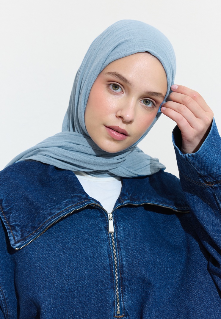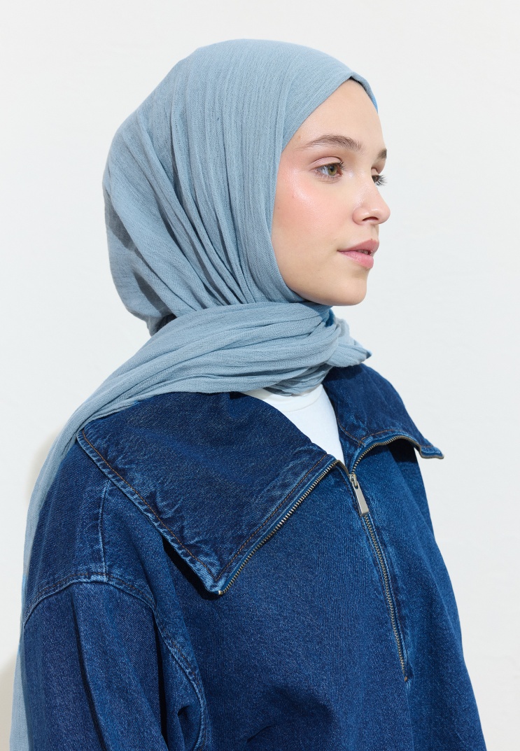COTTON LINEN HIJAB BLUE BOBA MILK