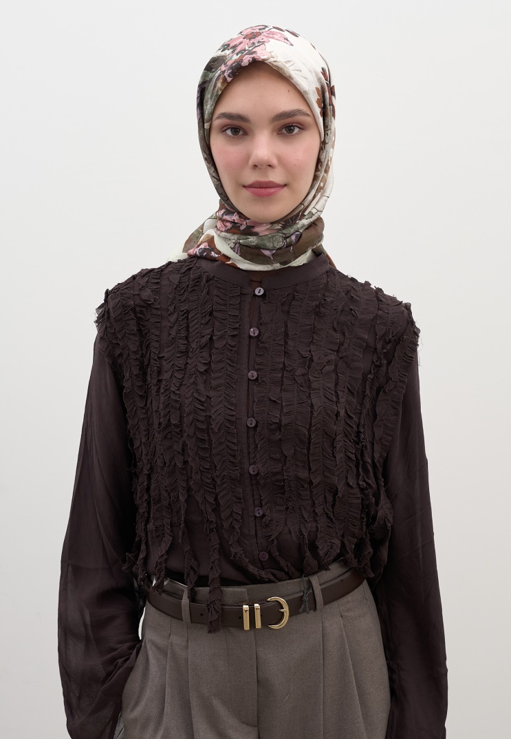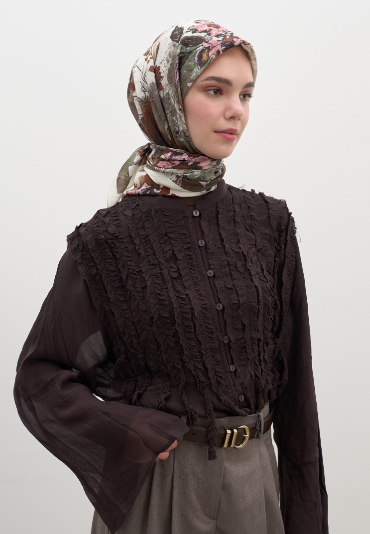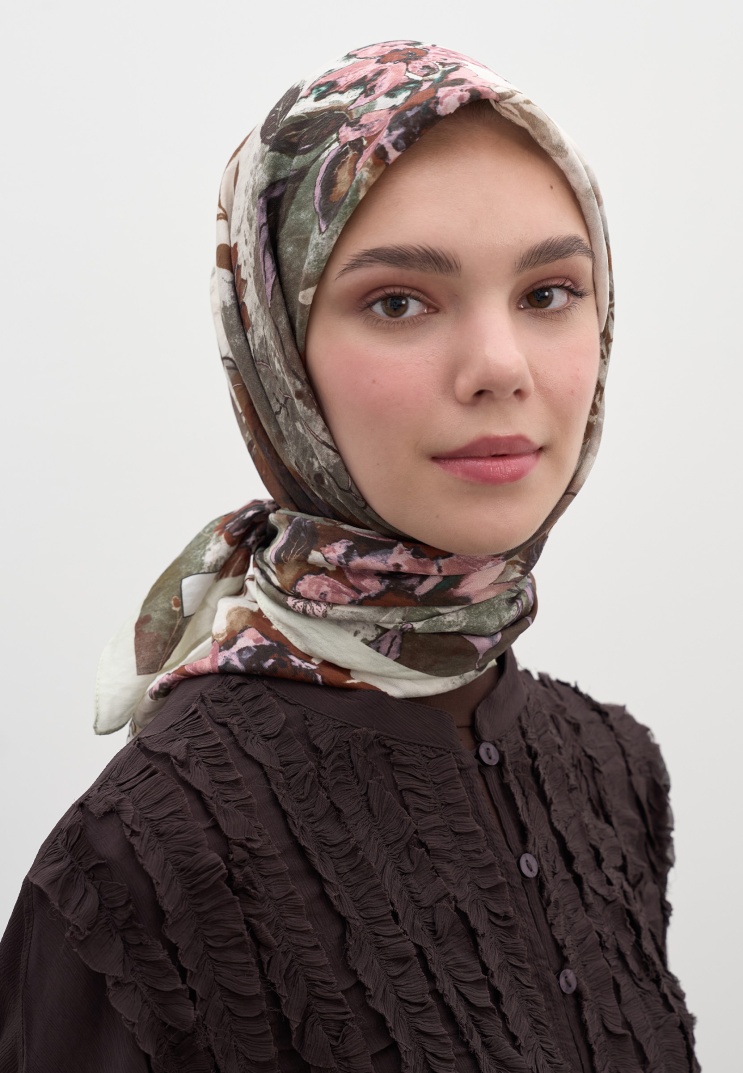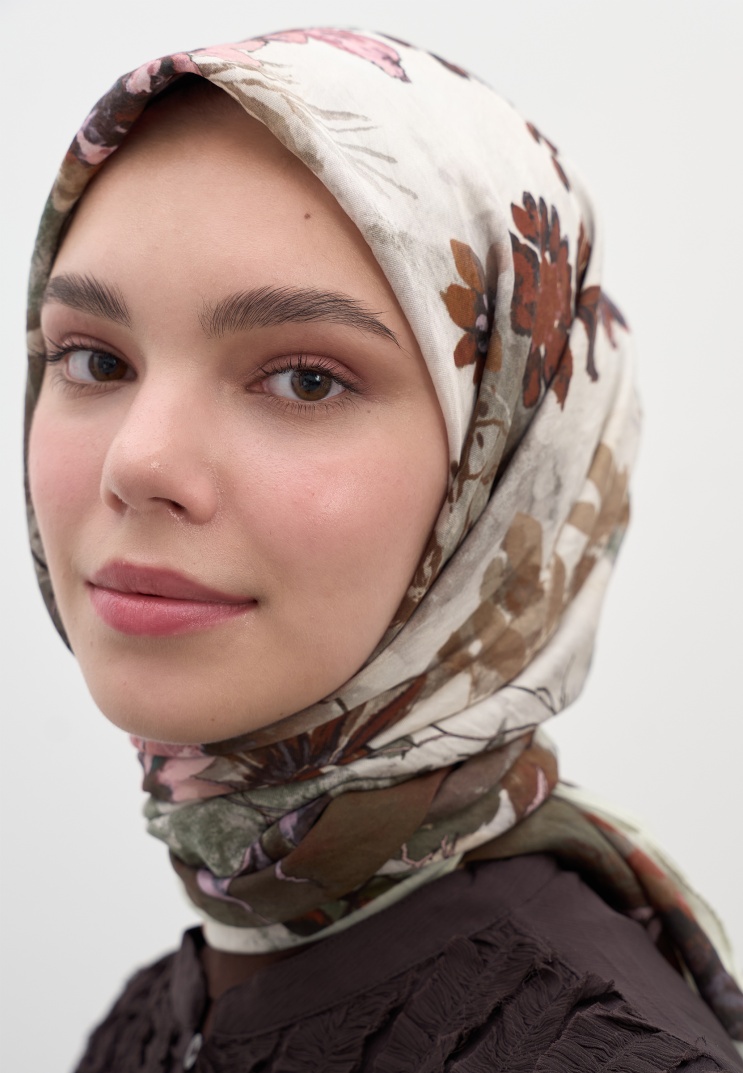 DITSY LEAVES DESEN PAMUKLU VİSKON EŞARP BEJ