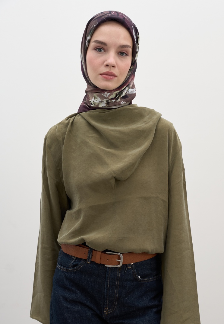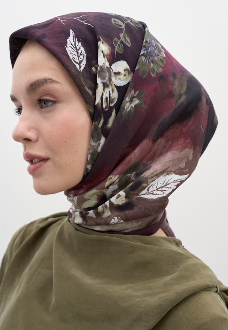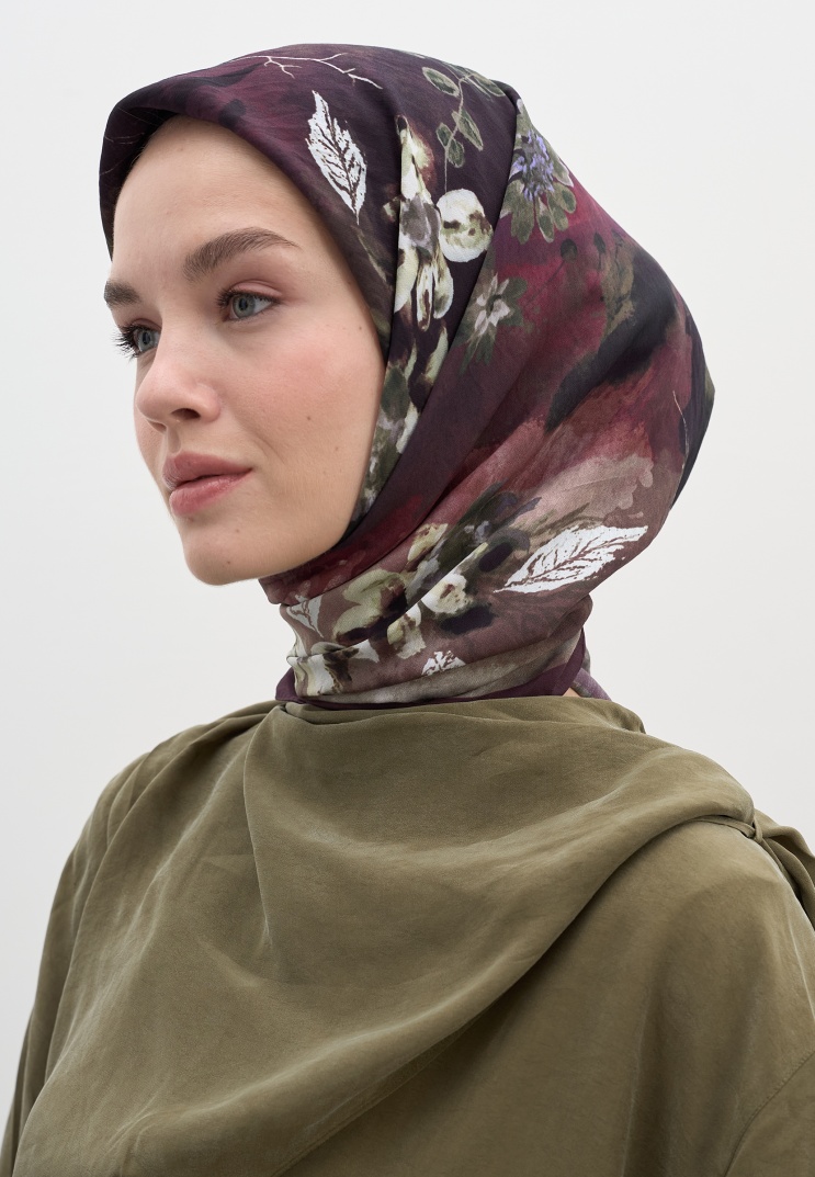 DITSY LEAVES DESEN PAMUKLU VİSKON EŞARP MÜRDÜM