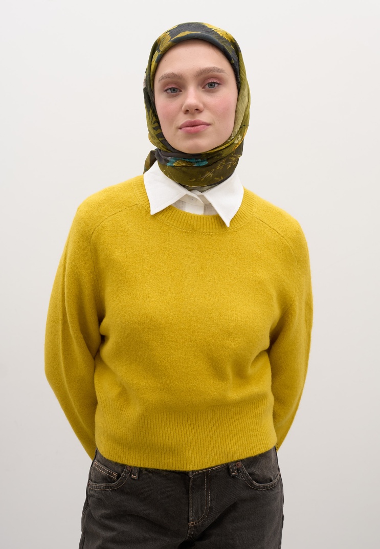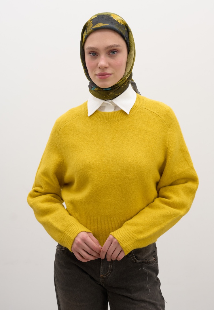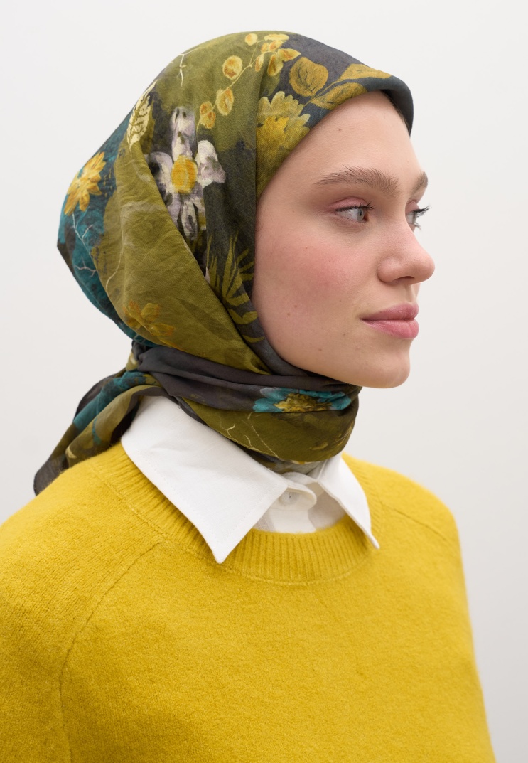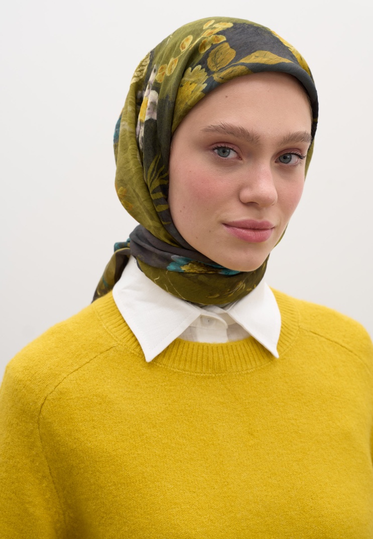 DITSY LEAVES DESEN PAMUKLU VİSKON EŞARP YAĞ YEŞİLİ