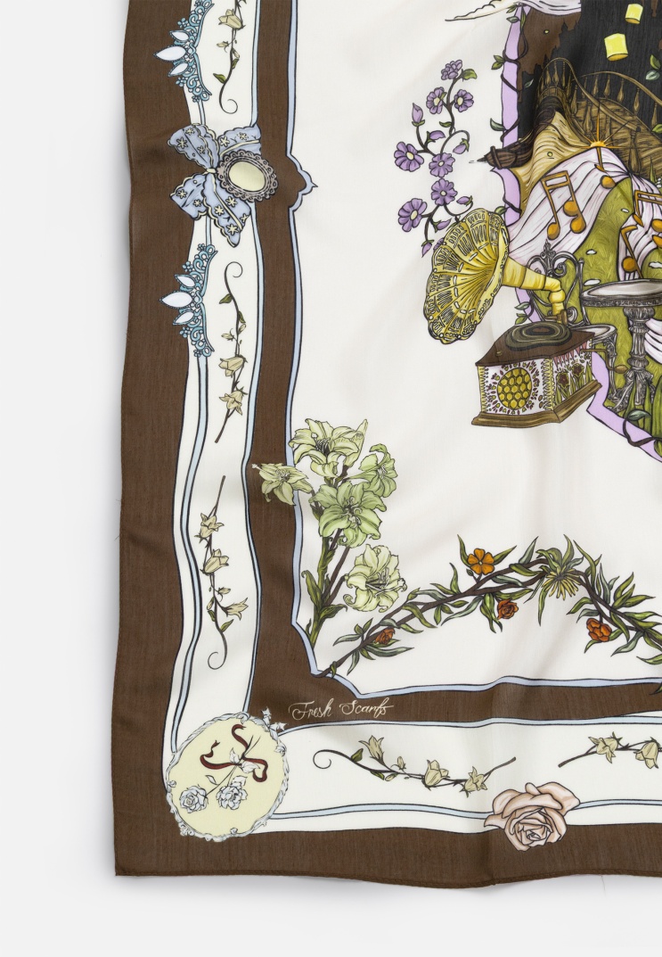 ENCHANTED MELODY PATTERNED FLOSS VISCOSE SCARF COFFEE CREAM