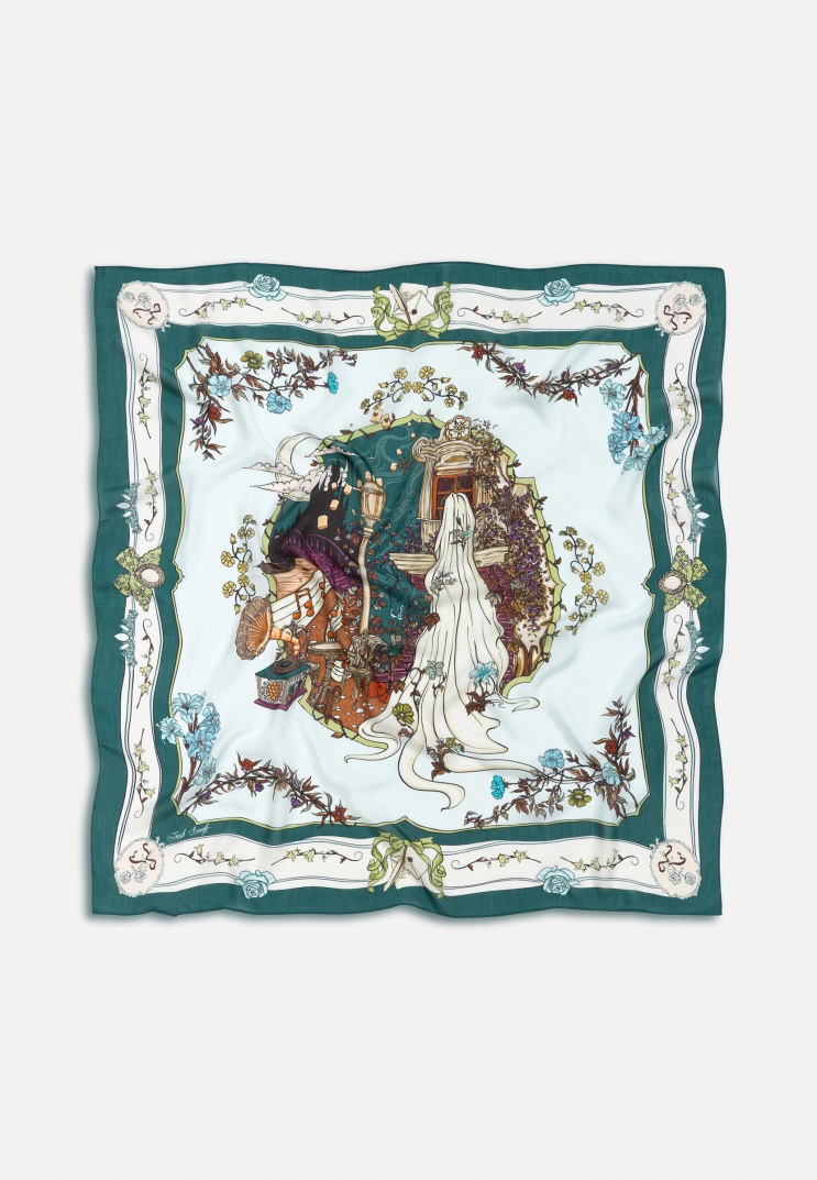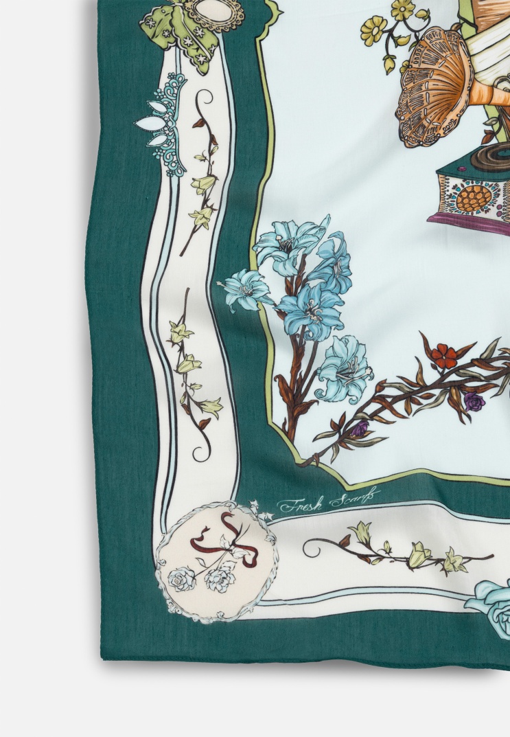 ENCHANTED MELODY PATTERNED FLOSS VISCOSE SCARF DEEP FOREST