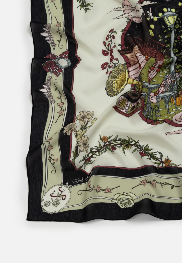 ENCHANTED MELODY PATTERNED FLOSS VISCOSE SCARF MIDNIGHT BLACK