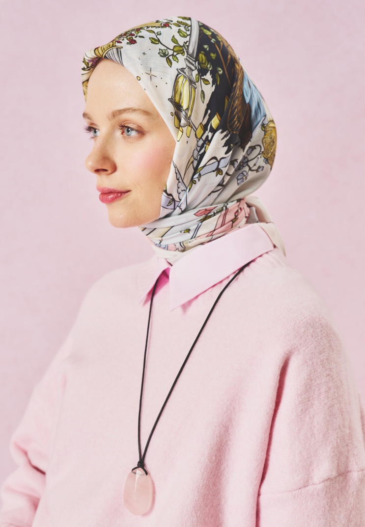 With its natural structure, fluid drape, silk-like feel, and breathable texture that provides all-day comfort, the viscose fabric is brought together with romantic patterns inspired by a fairytale world. The Letters Of Pure Love Hijab Collection presents each hijab with a unique story.