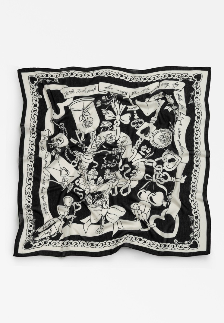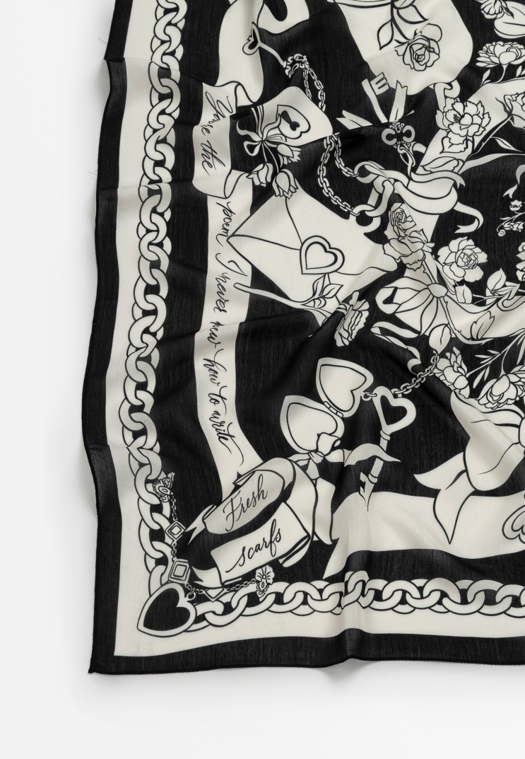 ETERNAL LOVE PATTERNED FLOSS VISCOSE SCARF BLACK