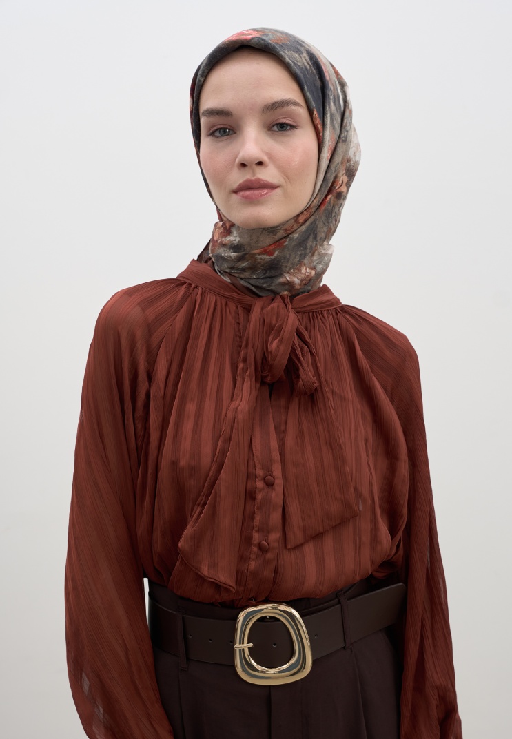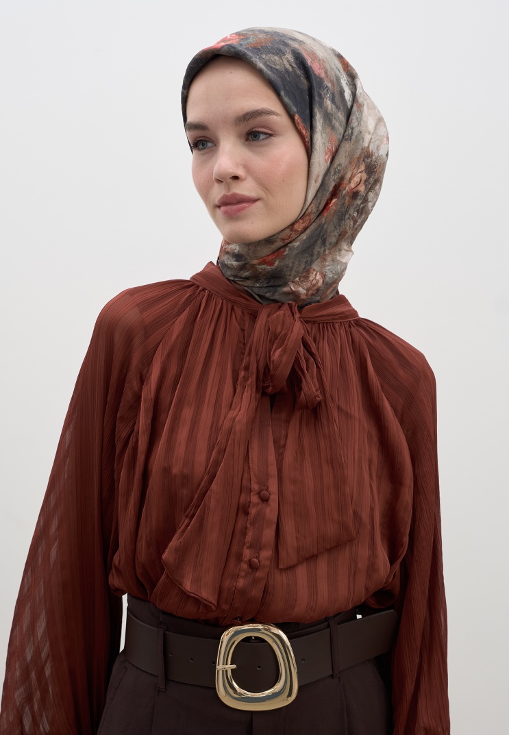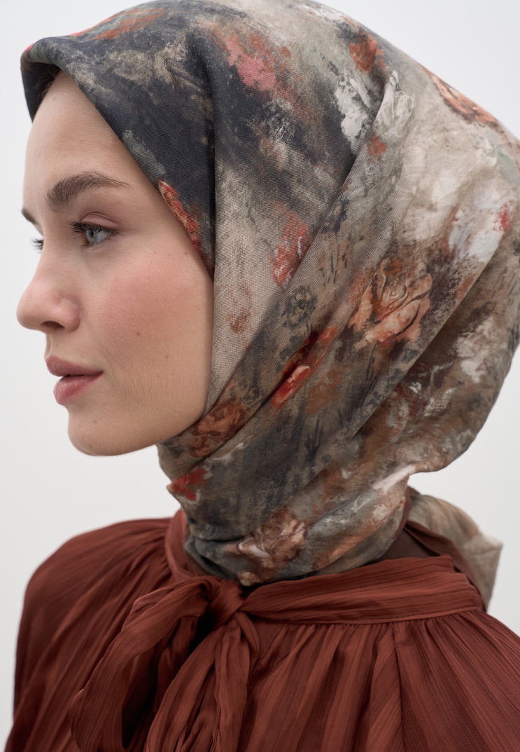 EVELYNE DESEN PAMUKLU VİSKON EŞARP KİREMİT
