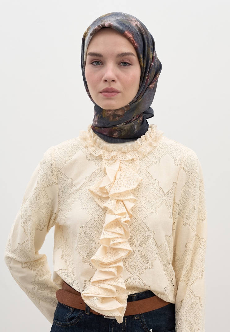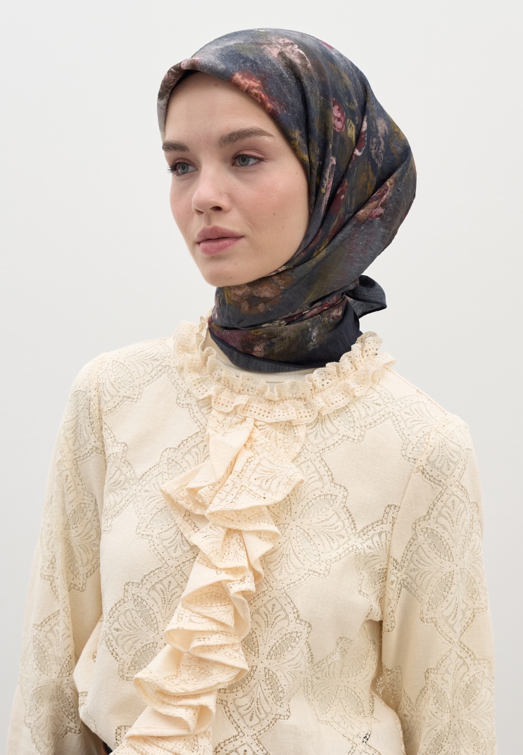 EVELYNE DESEN PAMUKLU VİSKON EŞARP LACİVERT