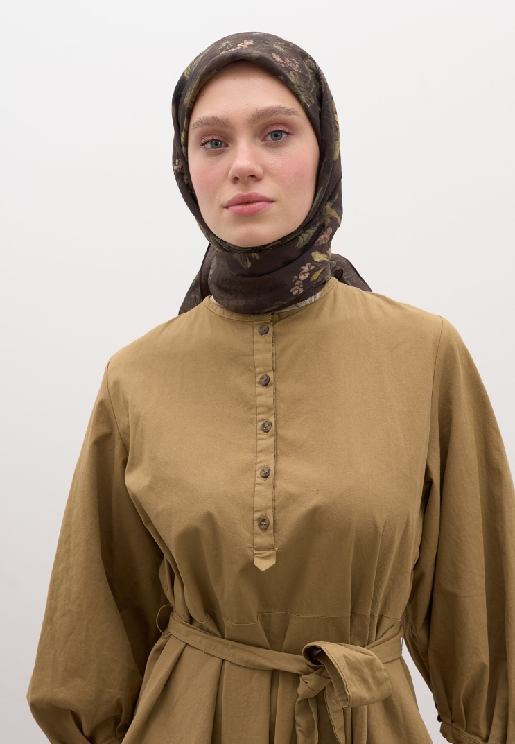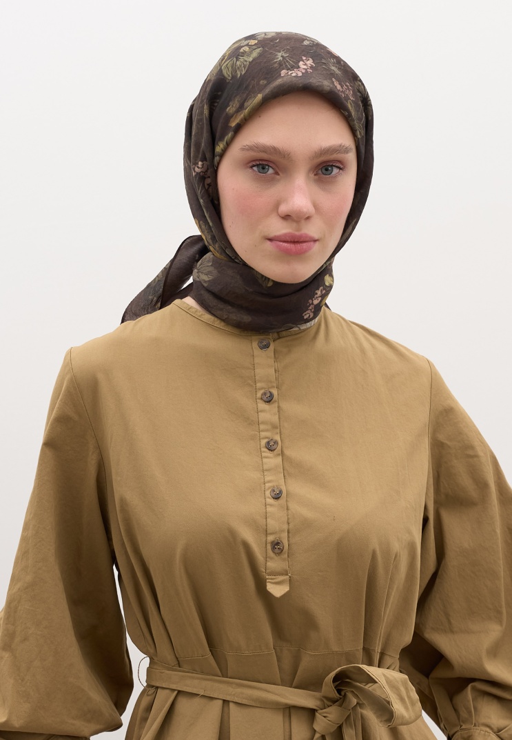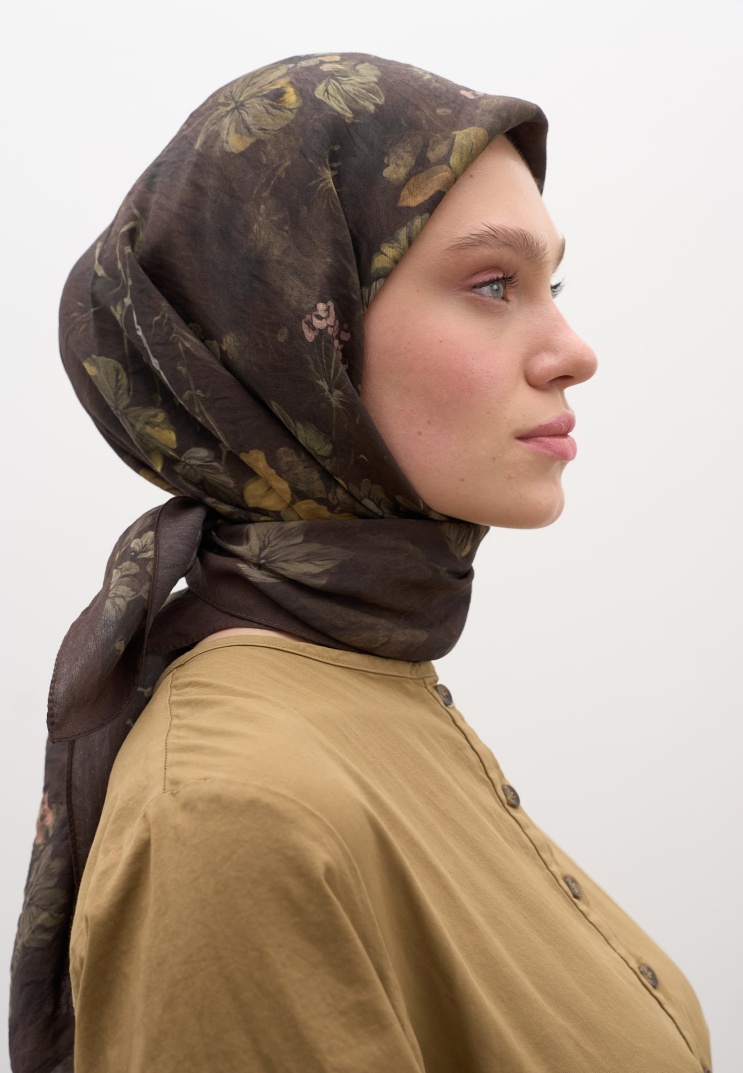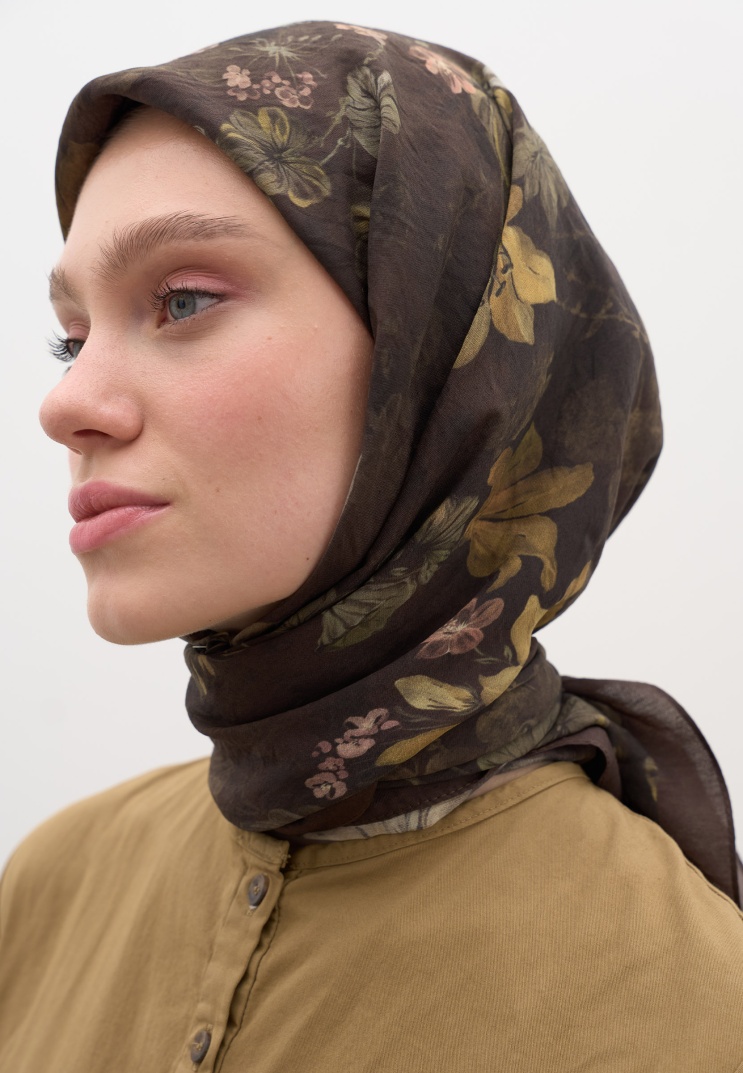 FALL BREEZE DESEN PAMUKLU VİSKON EŞARP KAHVERENGİ