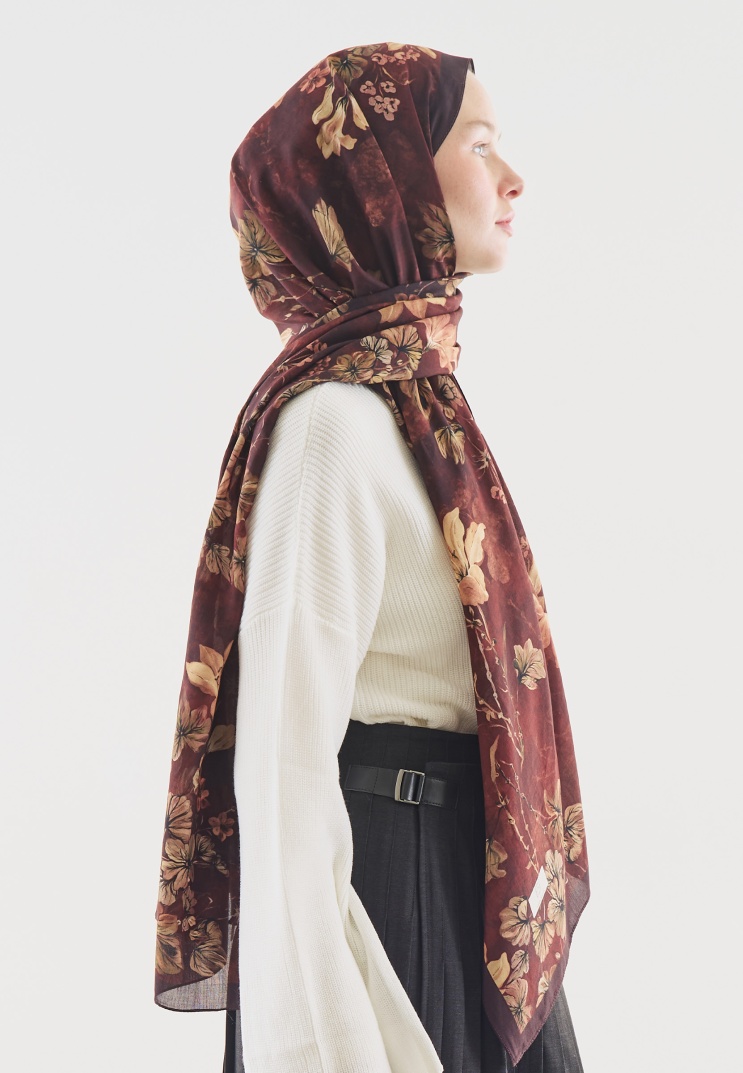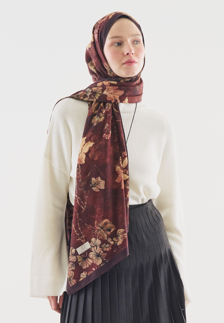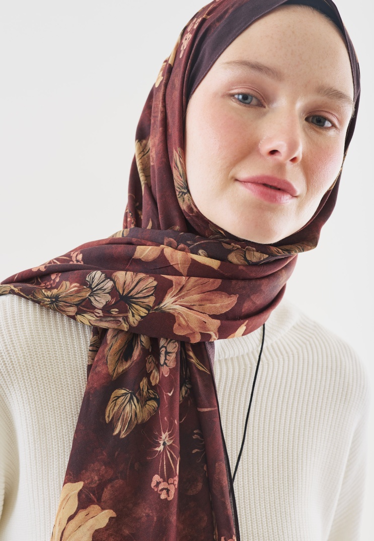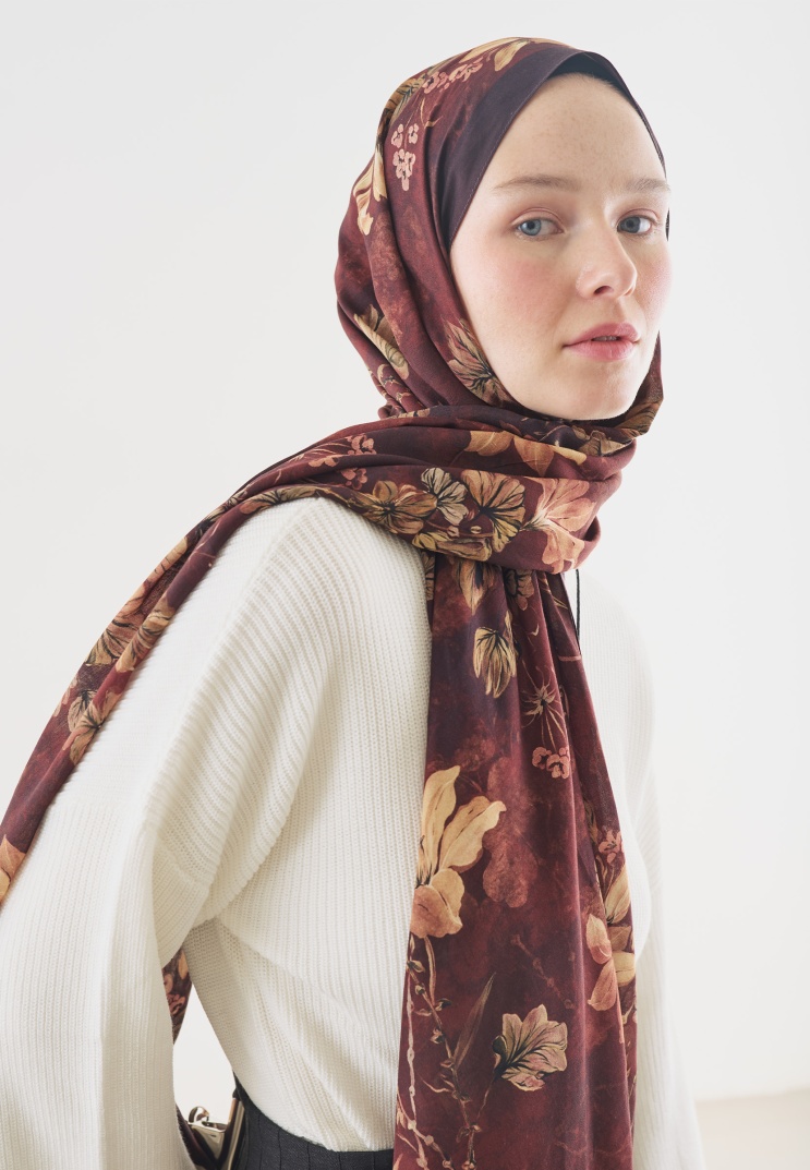 FALL BREEZE DESENLİ PAMUK VİSKON ŞAL BORDO
