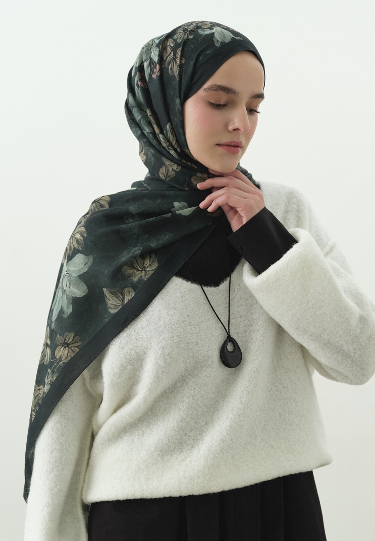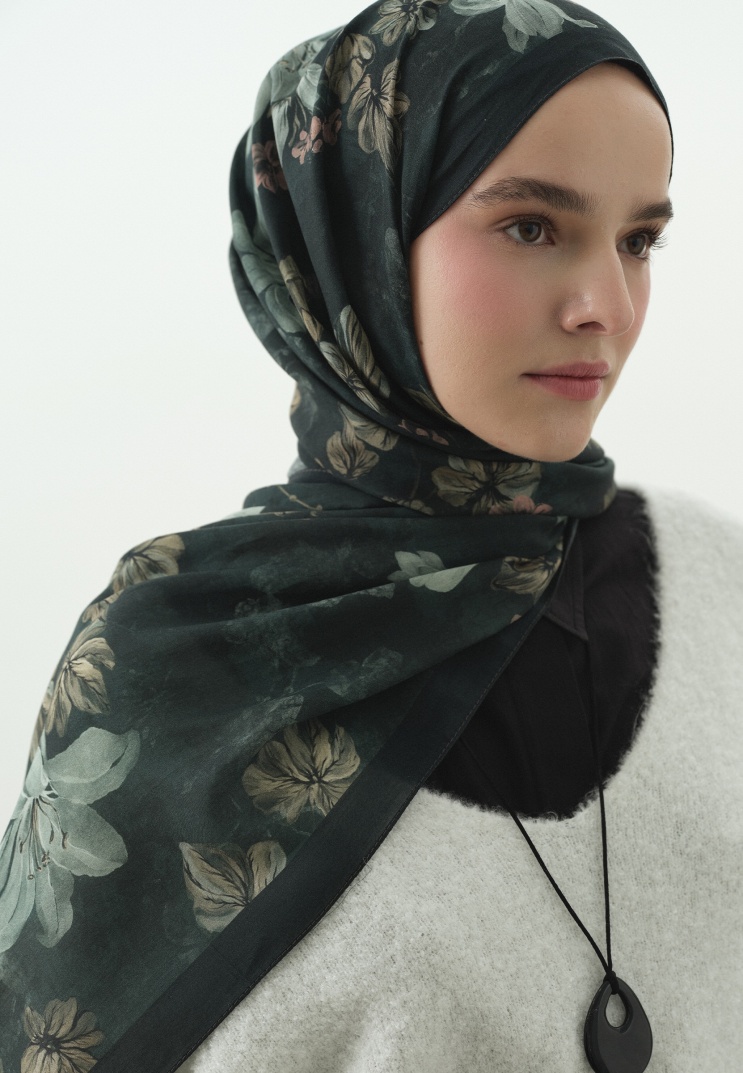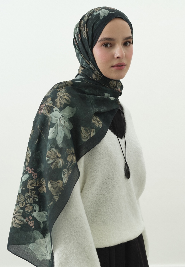 FALL BREEZE DESENLİ PAMUK VİSKON ŞAL DERİN YEŞİL
