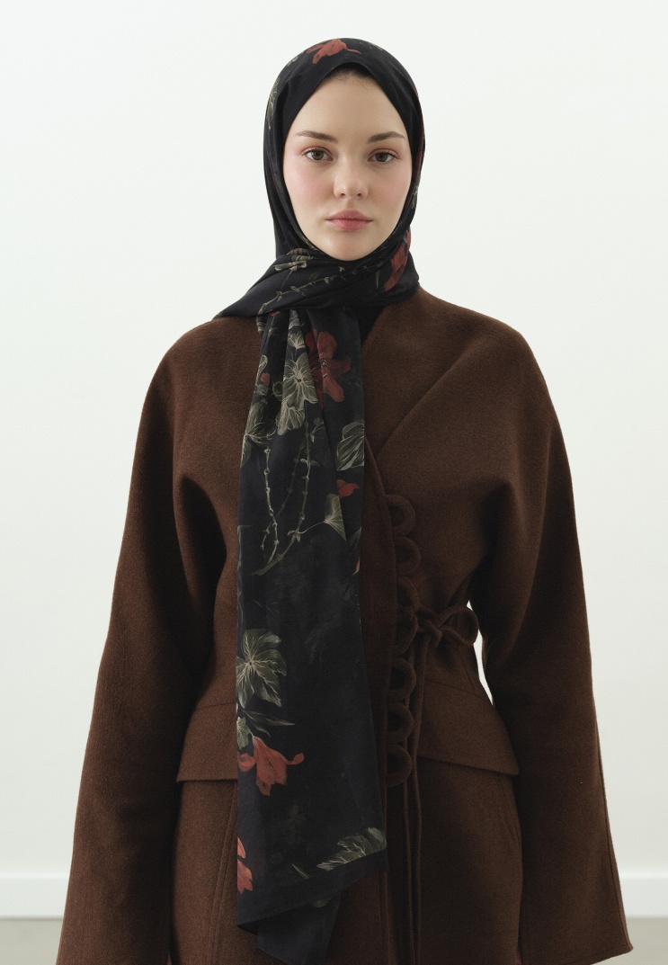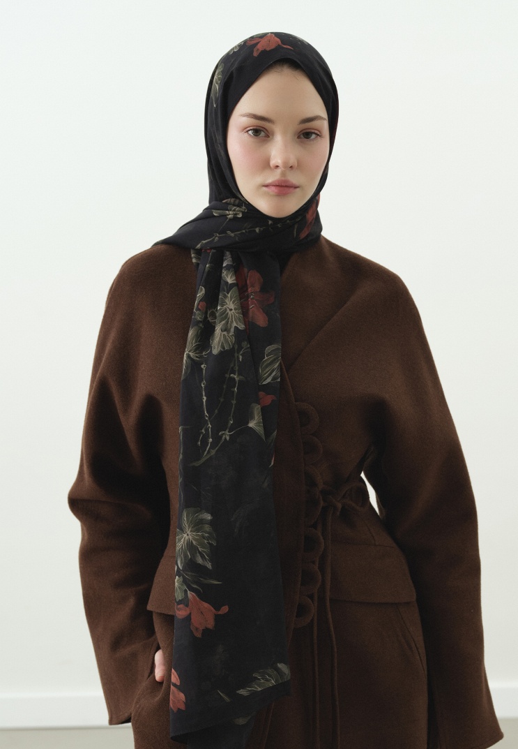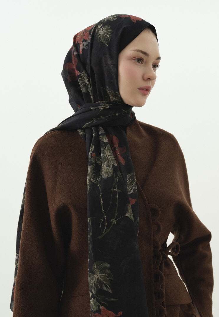 FALL BREEZE DESENLİ PAMUK VİSKON ŞAL SİYAH