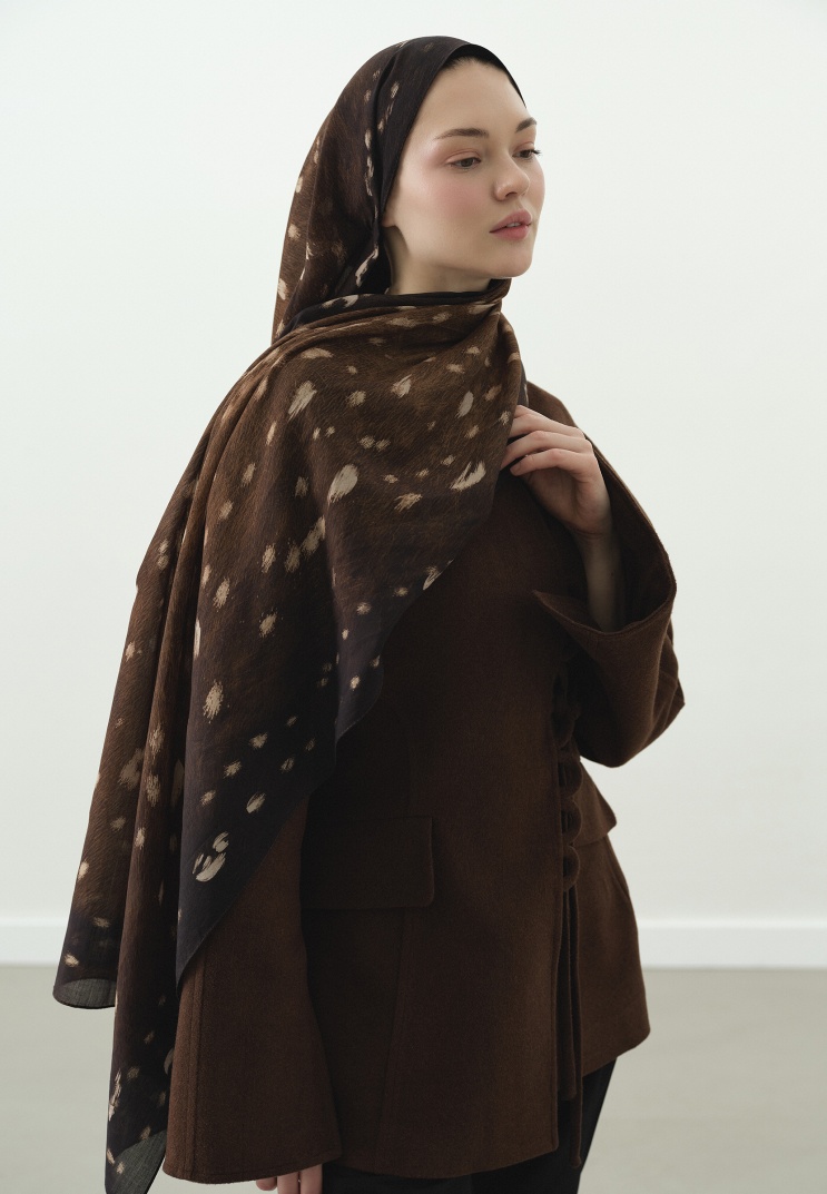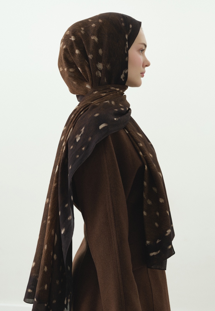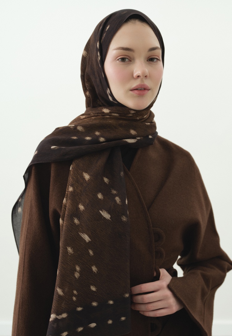 FAWN DESENLİ PAMUK VİSKON ŞAL KAHVERENGİ