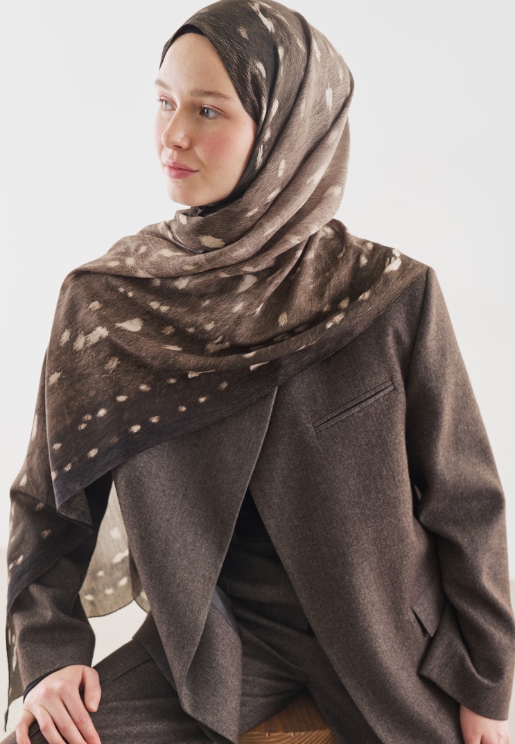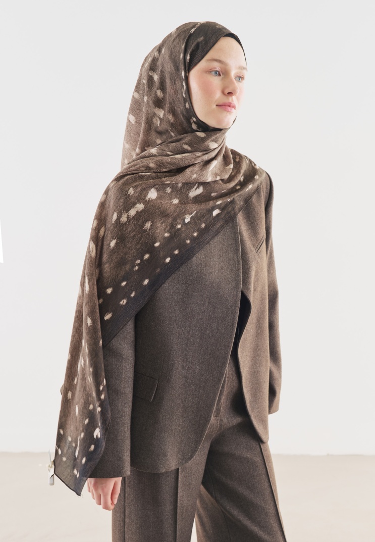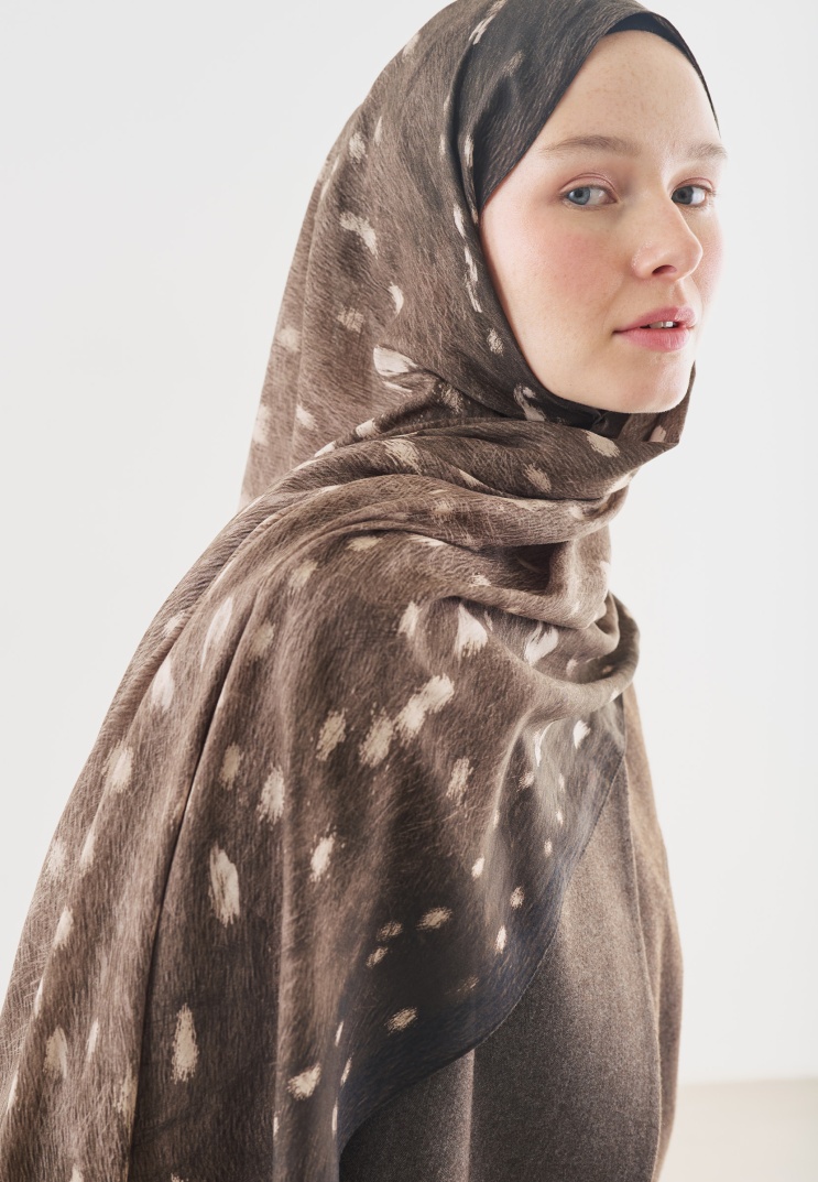 FAWN PATTERNED COTTON VISCOSE HIJAB IN MINK