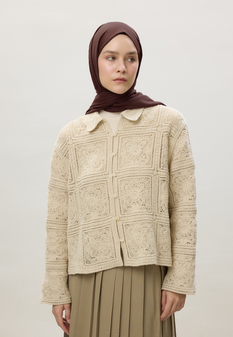 It has a cotton, breathable texture that will not weigh on your head in summer heat and will not slip. Thanks to the voile yarn in it, it does not thin and stretch on your head during the day.