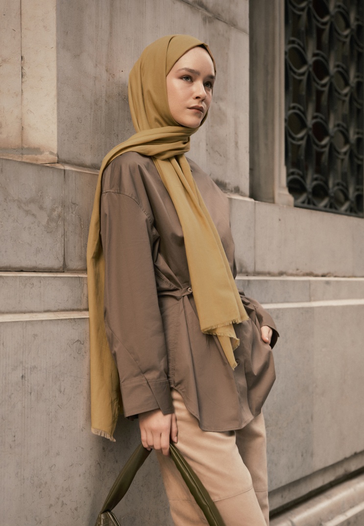 It has a cotton, breathable texture that will not weigh on your head in summer heat and will not slip. Thanks to the voile yarn in it, it does not thin and stretch on your head during the day.