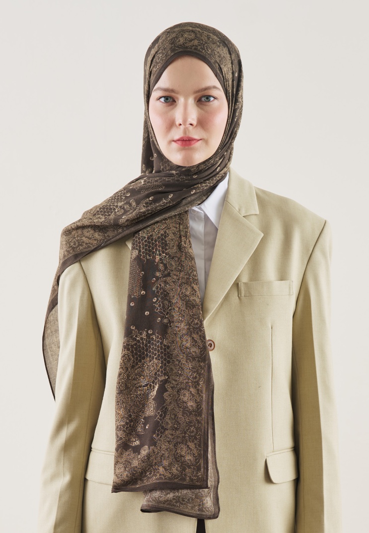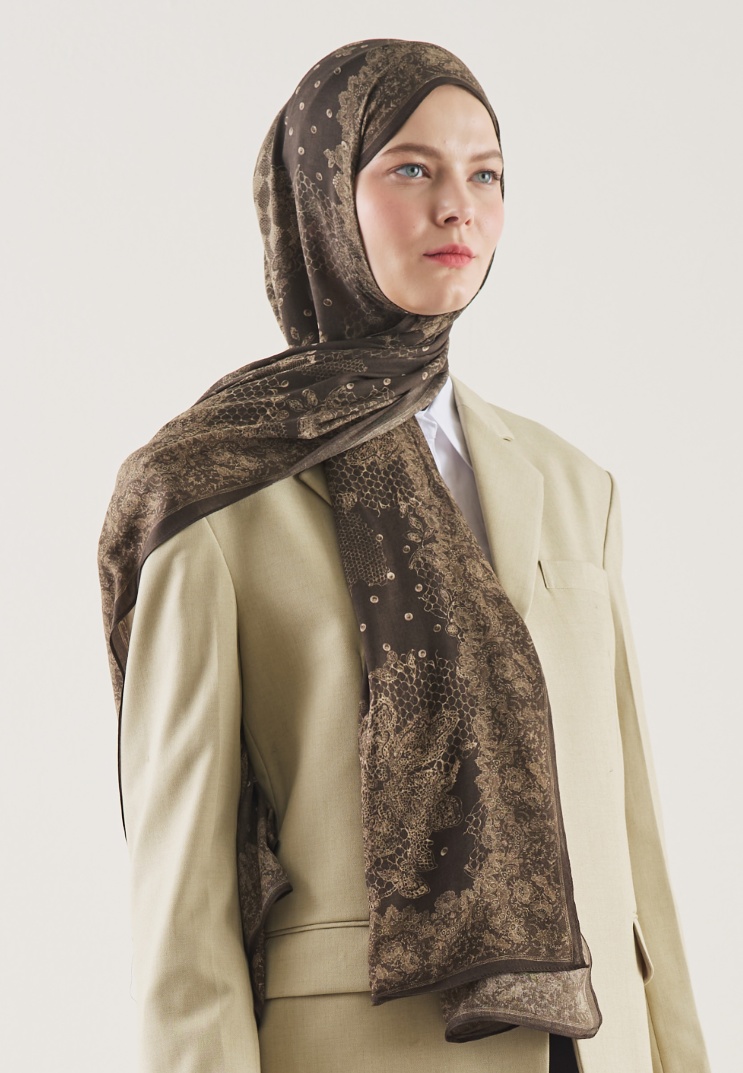 FLORAL LACE PATTERN RAMI HIJAB BROWN