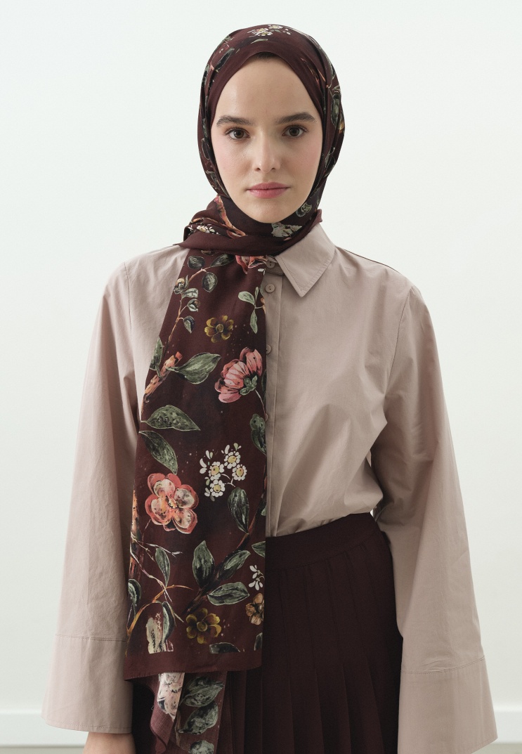 FLOWER RAIN DESENLİ PAMUK VİSKON ŞAL BORDO