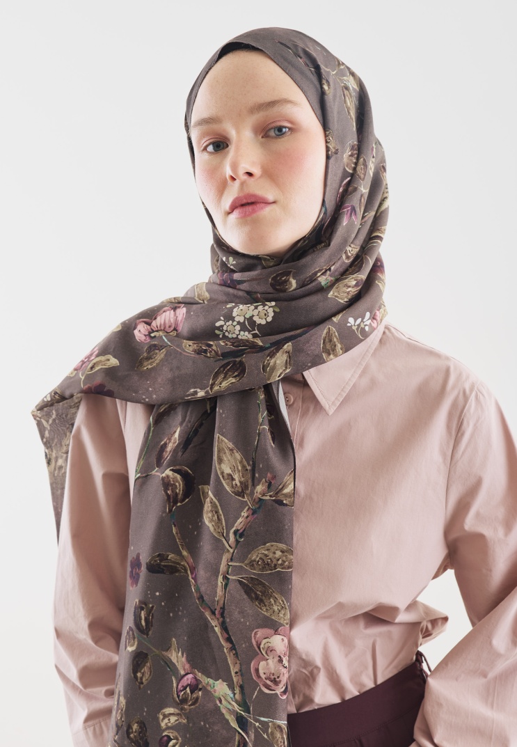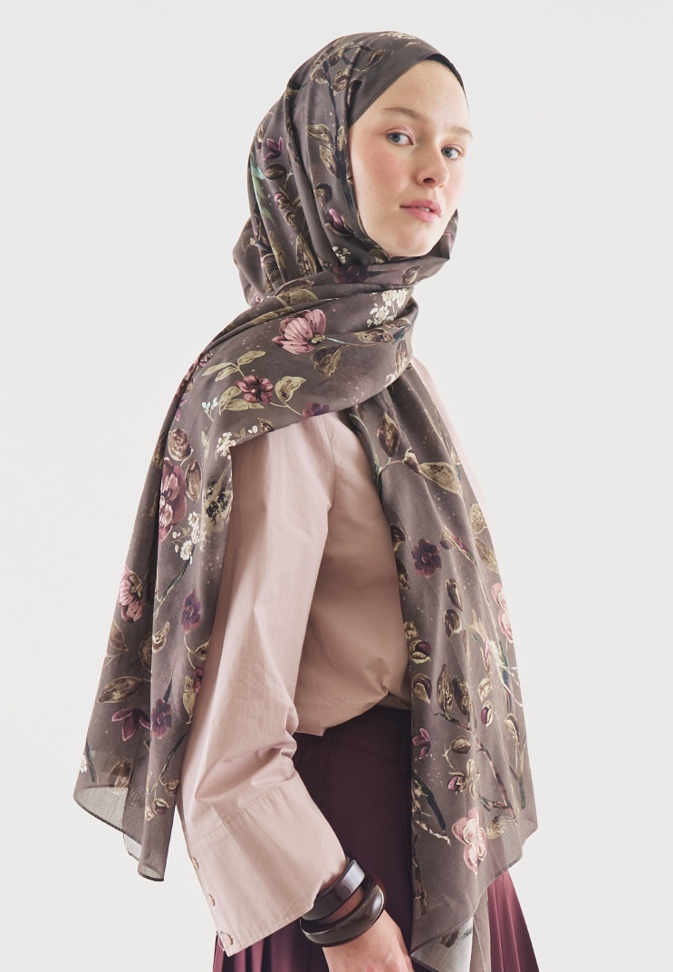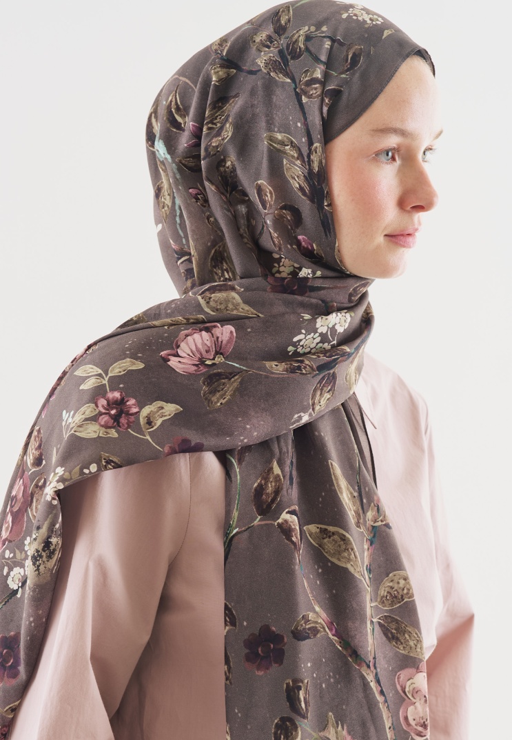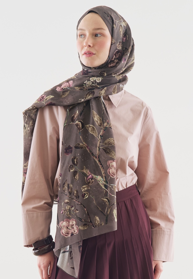 FLOWER RAIN DESENLİ PAMUK VİSKON ŞAL FÜME