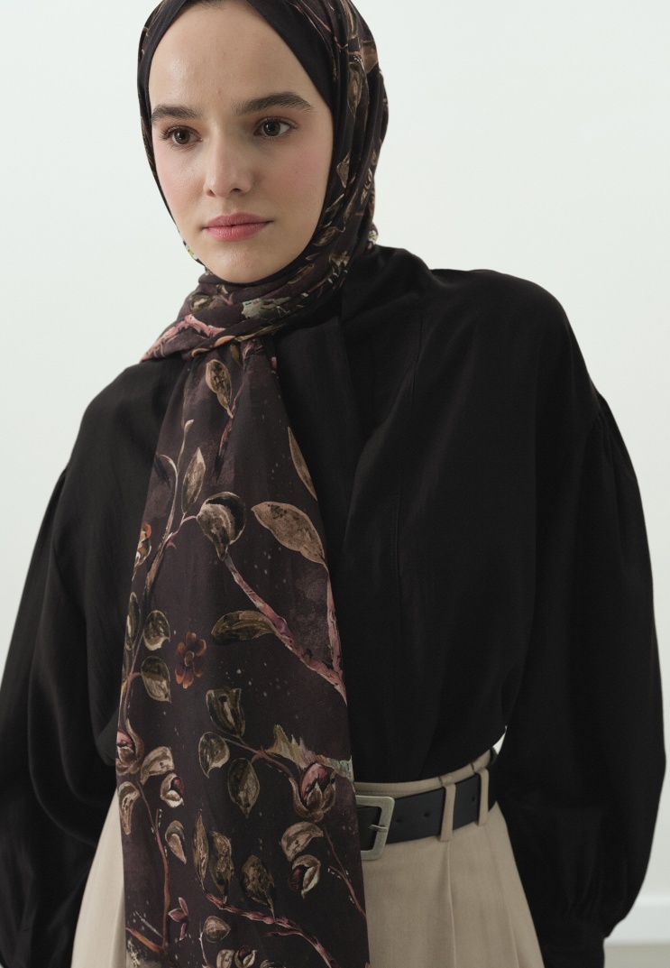 FLOWER RAIN DESENLİ PAMUK VİSKON ŞAL KAHVE