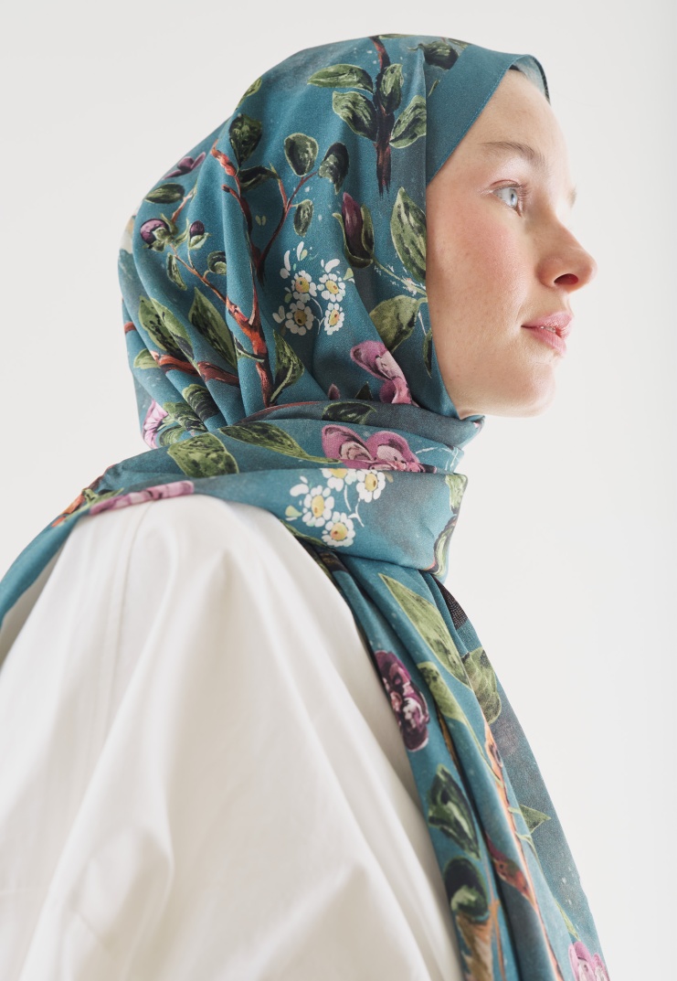 FLOWER RAIN DESENLİ PAMUK VİSKON ŞAL OKYANUS