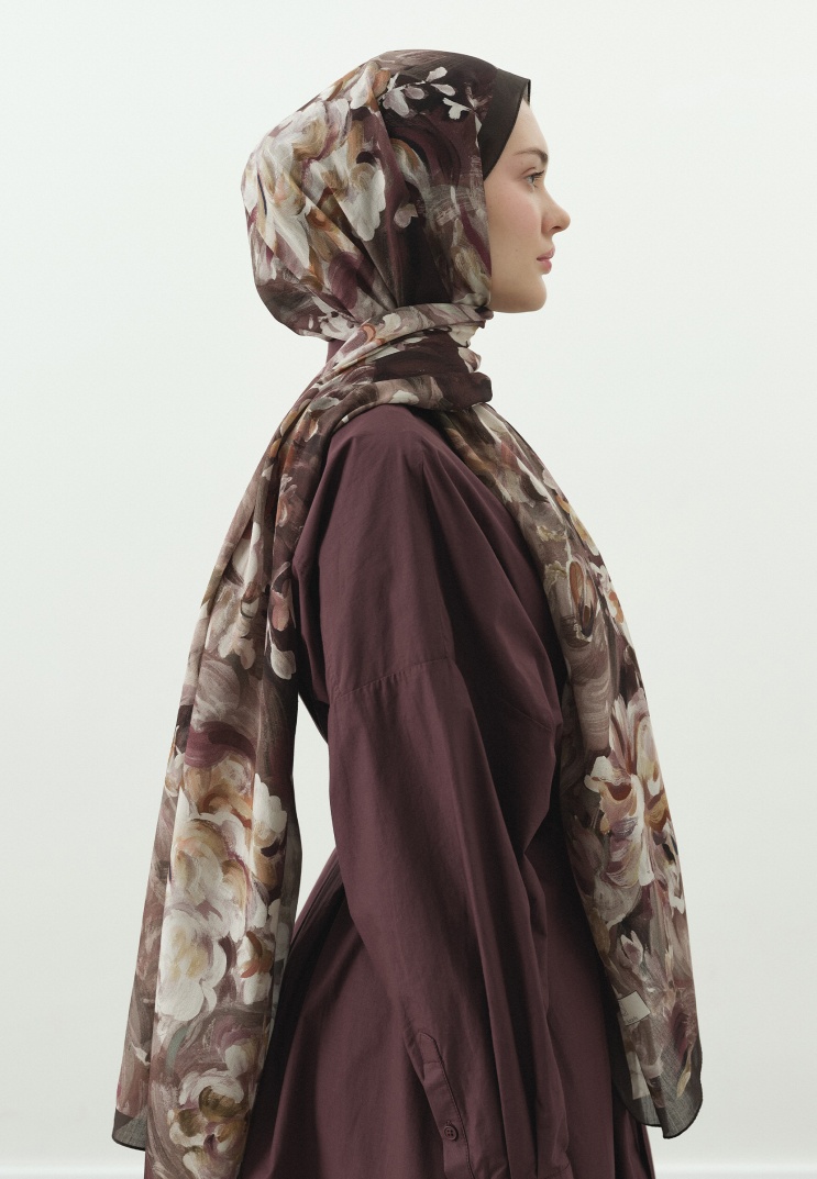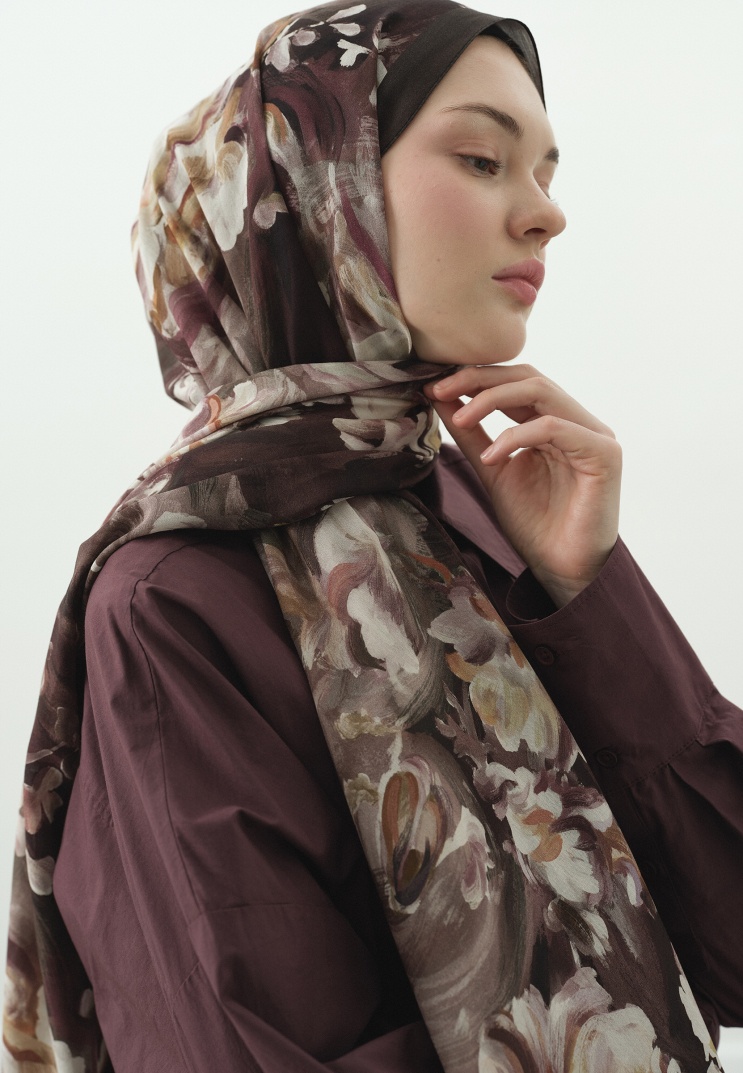 JANE DESENLİ PAMUK VİSKON ŞAL TOZLU KAHVE