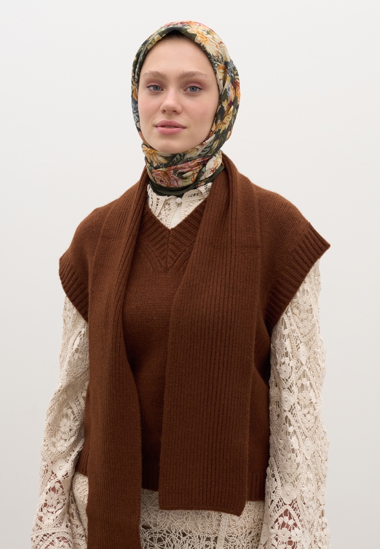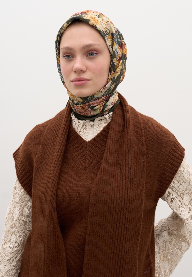 JUDITH PATTERNED COTTON VISCOSE SCARF KHAKI