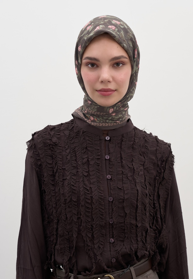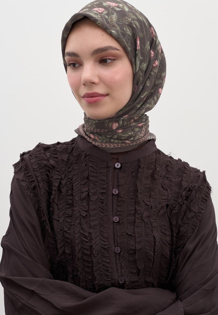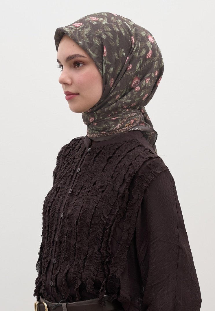 LEANA DESEN PAMUKLU VİSKON EŞARP ÇİKOLATA KAHVE
