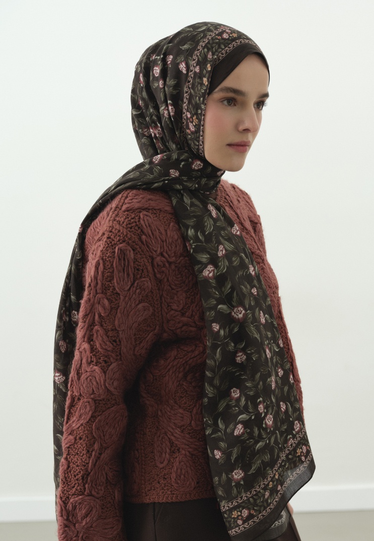 LEANA DESENLİ PAMUK VİSKON ŞAL KAHVE