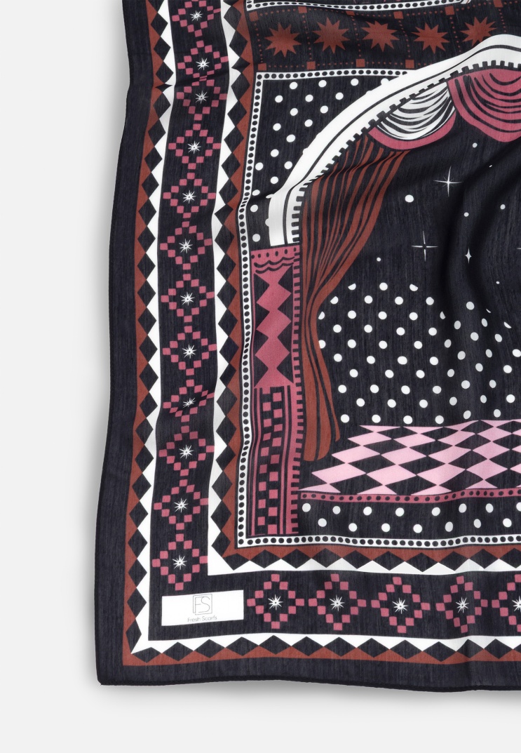 LITTLE LOVE DREAM PATTERNED FLOSS VISCOSE SCARF BLACK SWAN