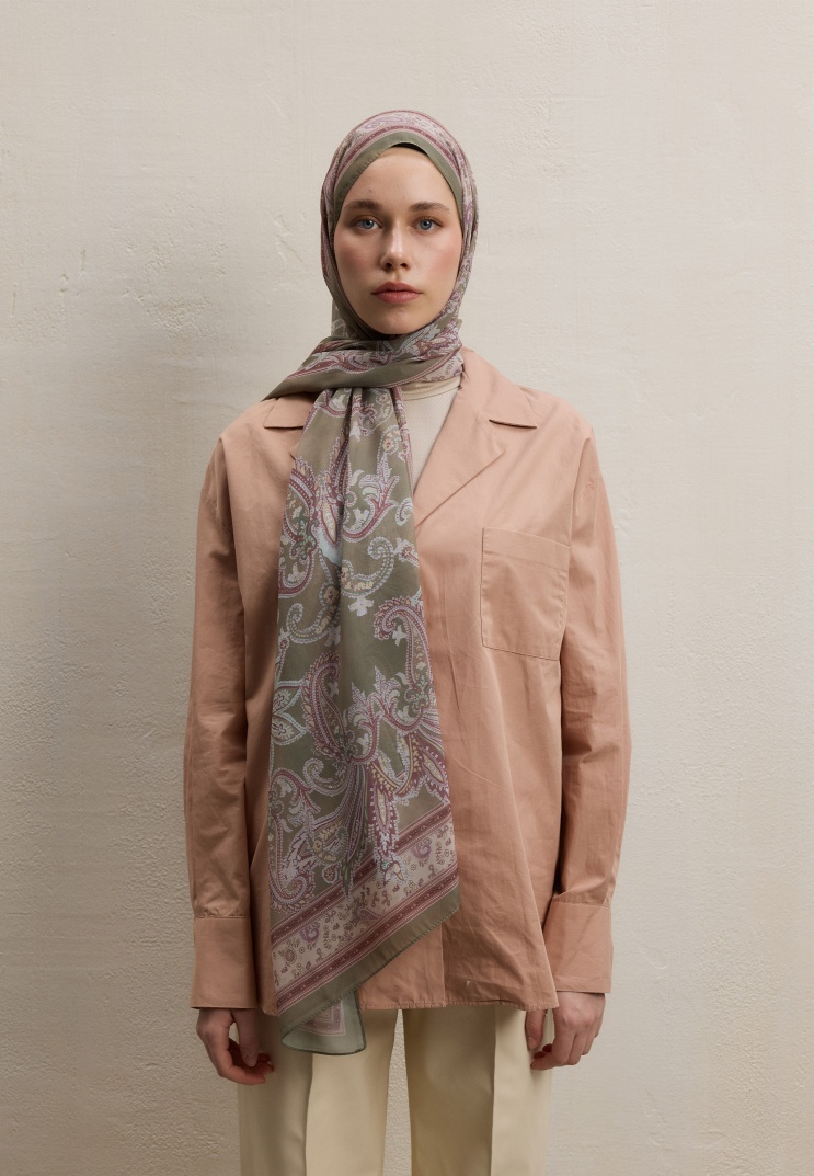 LUNA DESEN İPEK KREP ŞAL TOPRAK