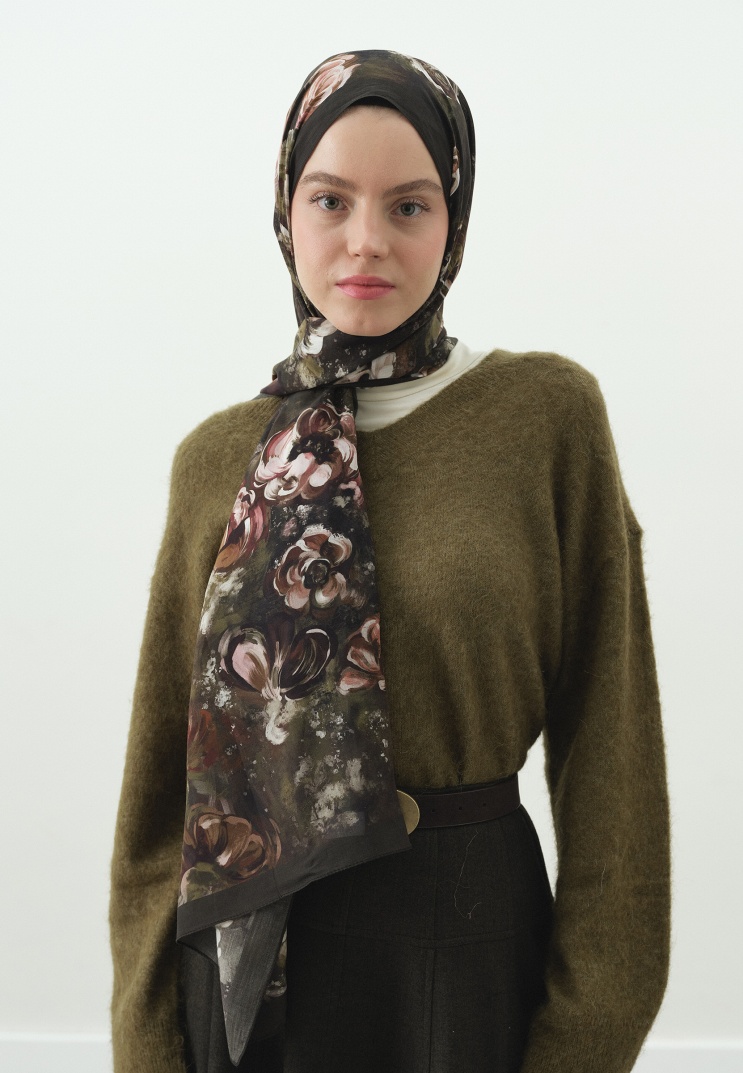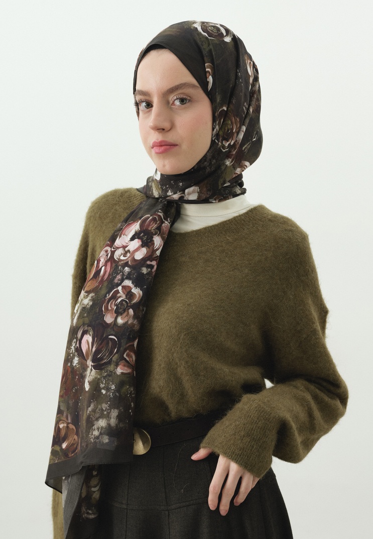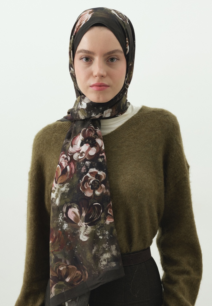 MADELEINE DESENLİ PAMUK VİSKON ŞAL ASKERİ HAKİ