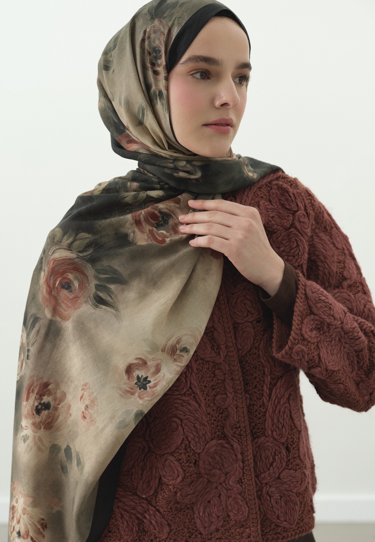 The Dark Romance Hijab Collection combines romantic aesthetics with a modern touch through its painting-like patterns and flowing, soft texture. This timeless collection, painted with shadows, deep tones, and detailed brush strokes, adapts to you all day with hijabs made from lightweight and comfortable fabrics.