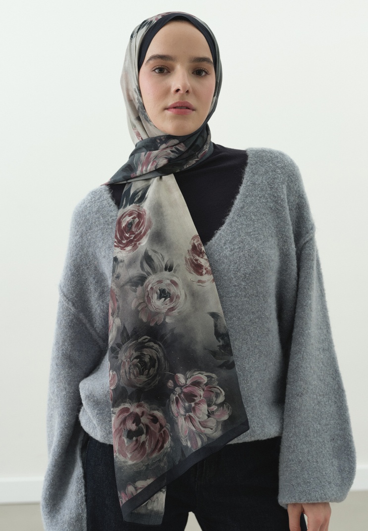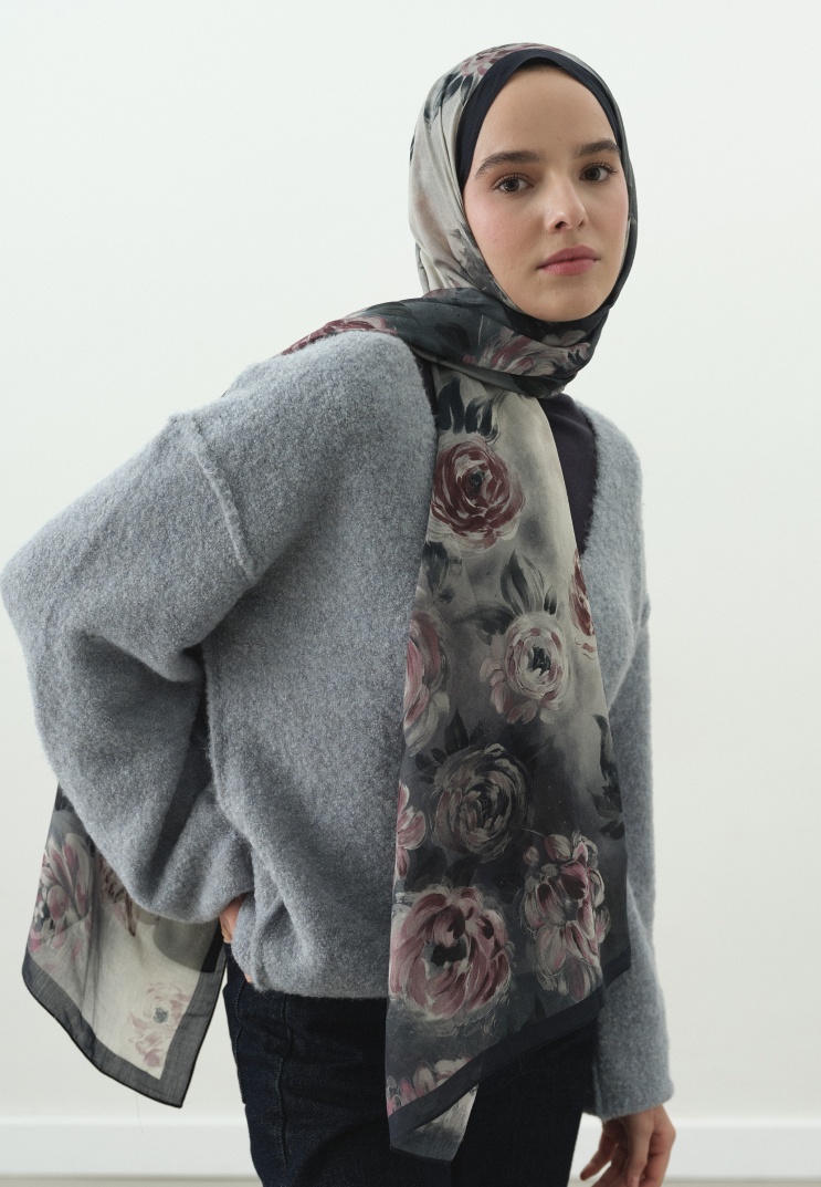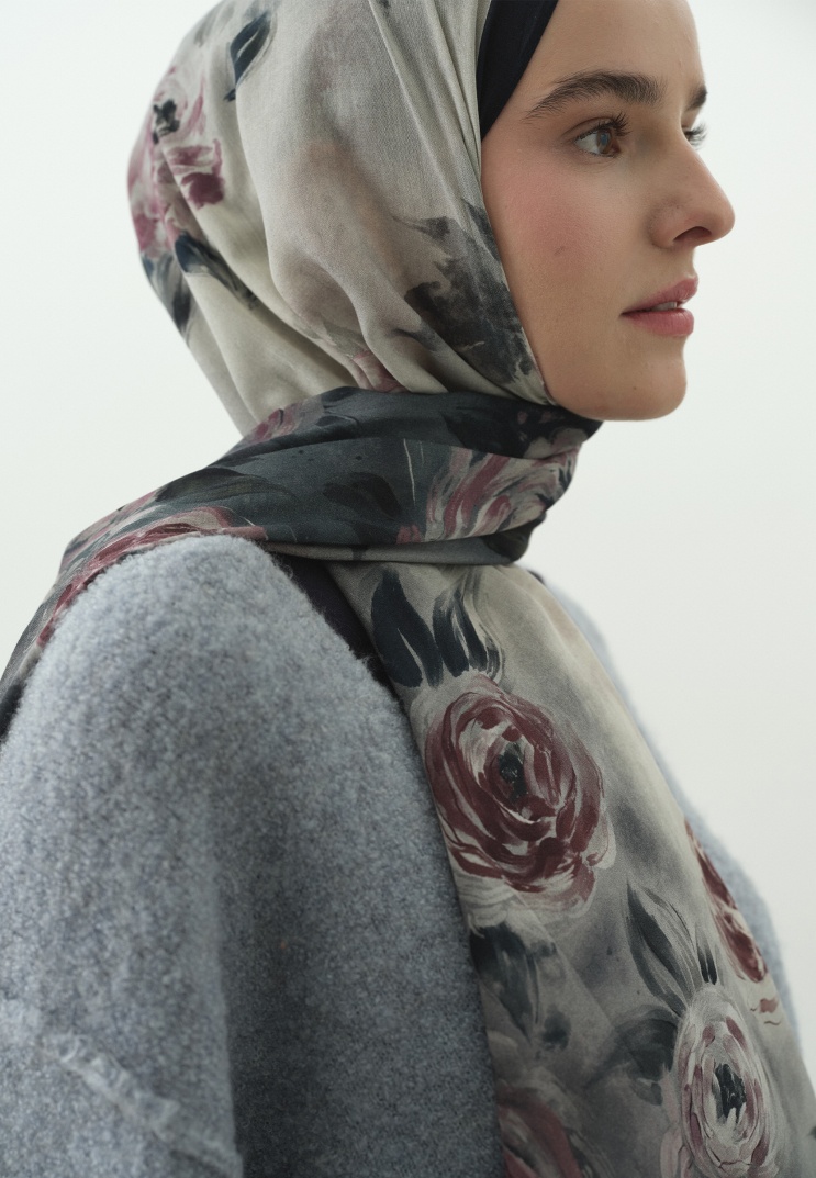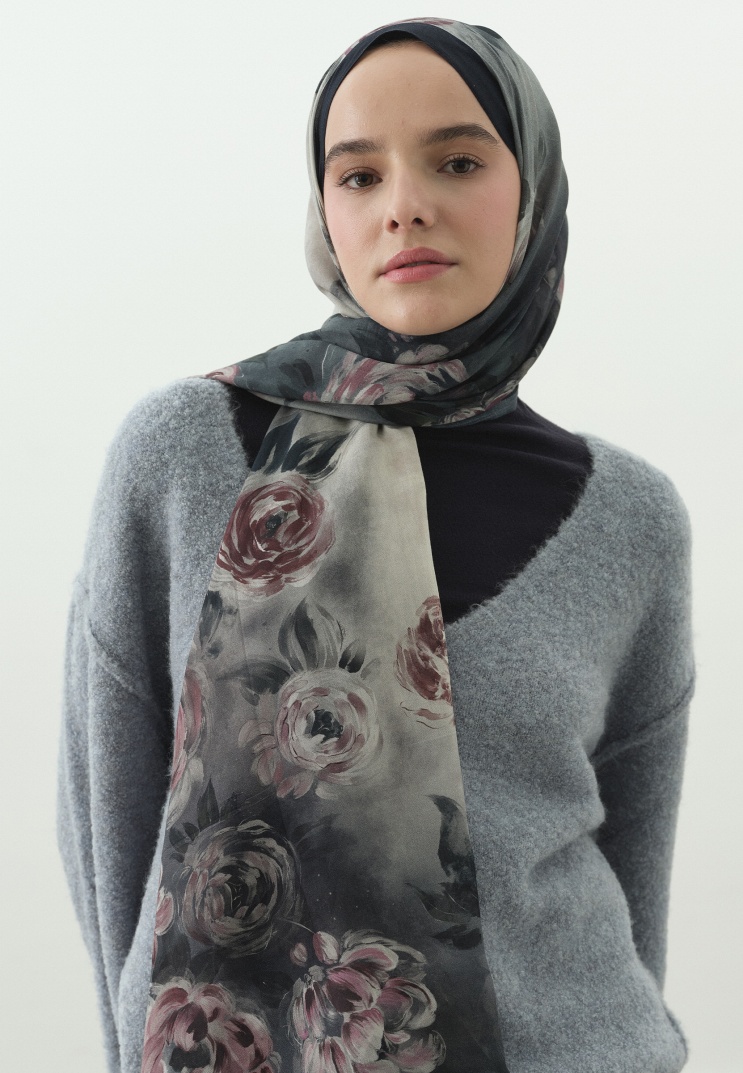 The Dark Romance Hijab Collection combines romantic aesthetics with a modern touch through its painting-like patterns and flowing, soft texture. This timeless collection, painted with shadows, deep tones, and detailed brush strokes, adapts to you all day with hijabs made from lightweight and comfortable fabrics.