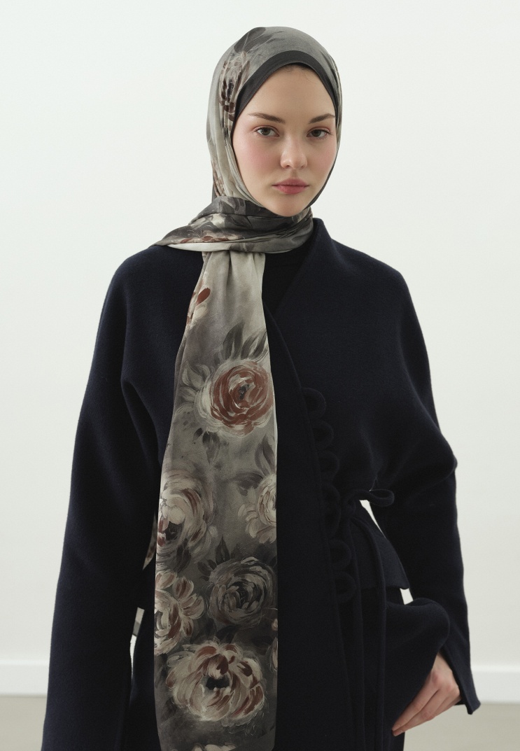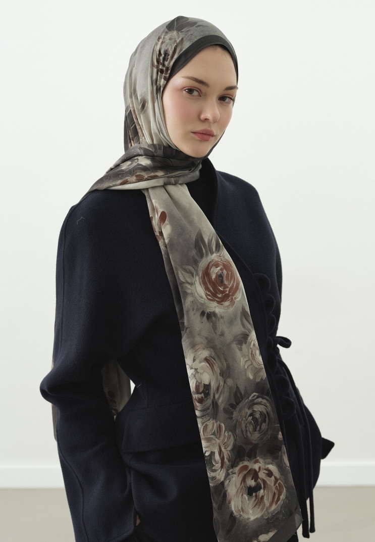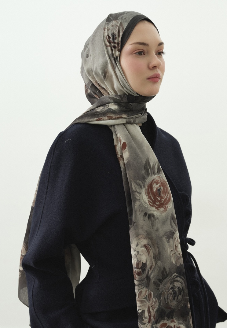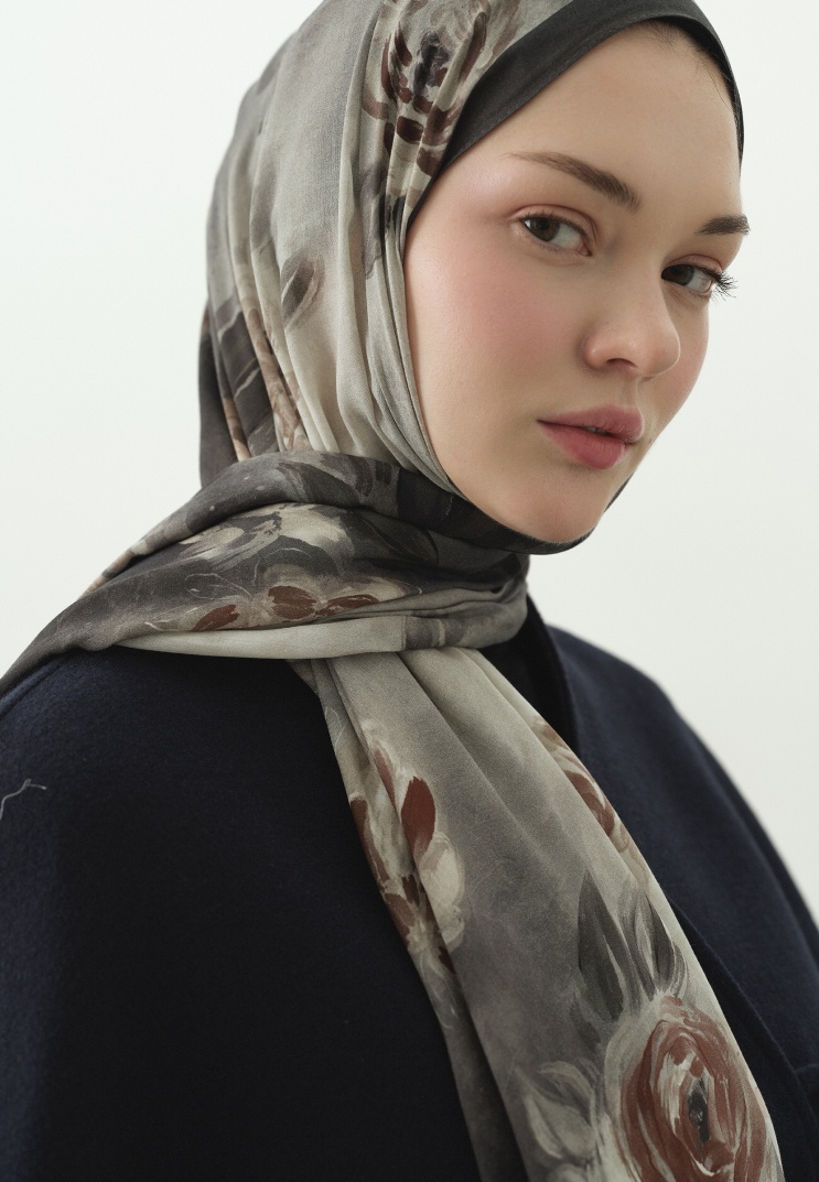 The Dark Romance Hijab Collection combines romantic aesthetics with a modern touch through its painting-like patterns and flowing, soft texture. This timeless collection, painted with shadows, deep tones, and detailed brush strokes, adapts to you all day with hijabs made from lightweight and comfortable fabrics.