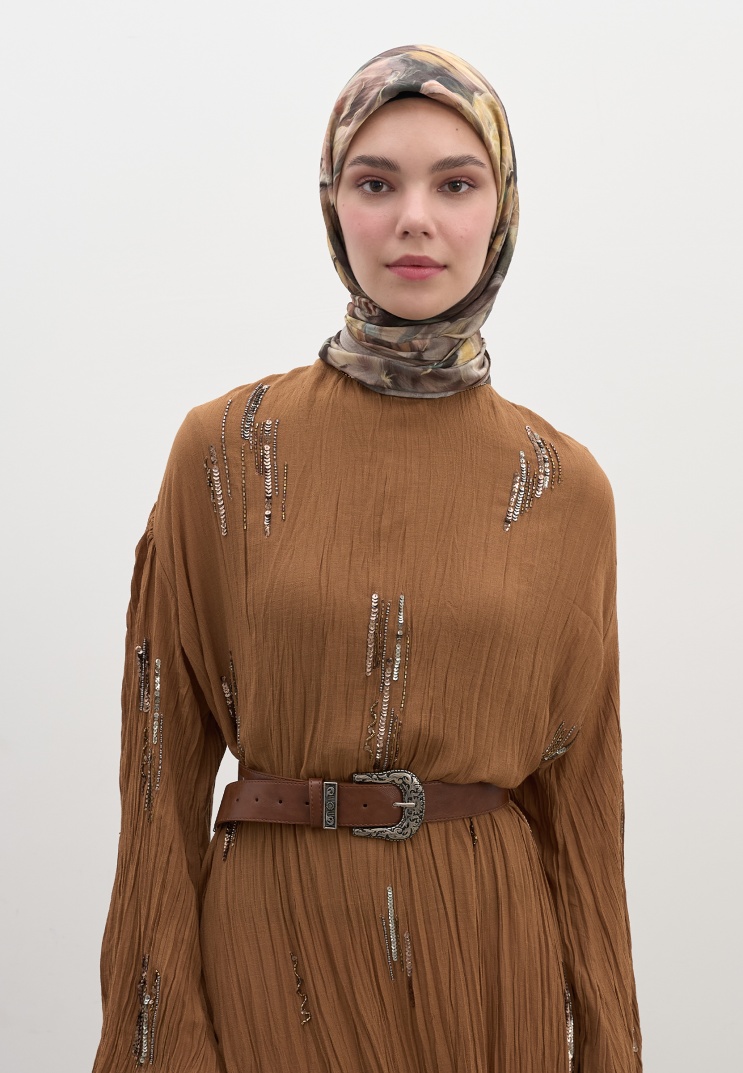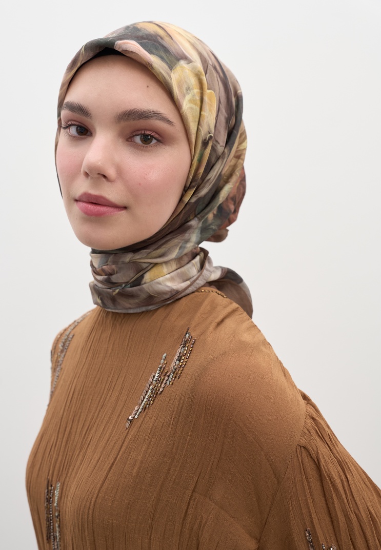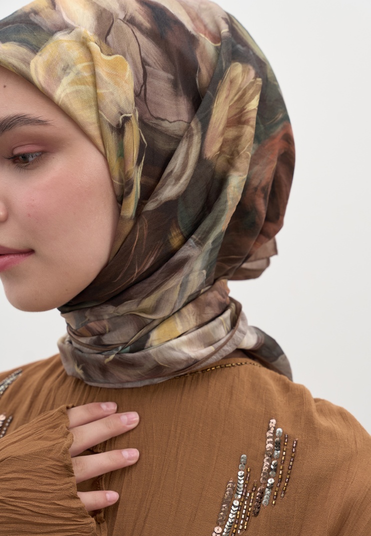 The Dark Romance Hijab Collection combines romantic aesthetics with a modern touch through its painting-like patterns and flowing, soft texture. This timeless collection, painted with shadows, deep tones, and detailed brush strokes, adapts to you all day with hijabs made from lightweight and comfortable fabrics.