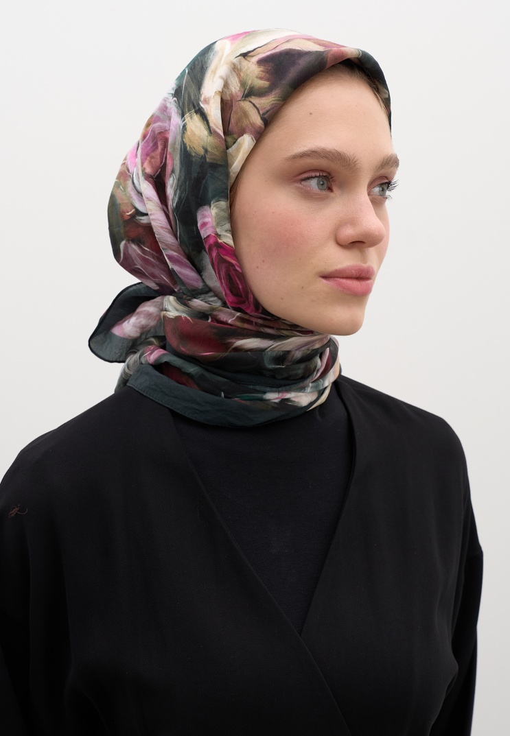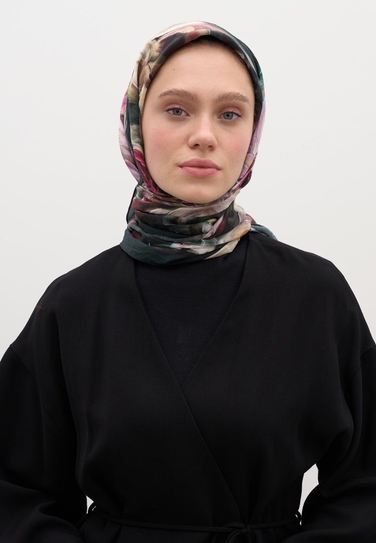 The Dark Romance Hijab Collection combines romantic aesthetics with a modern touch through its painting-like patterns and flowing, soft texture. This timeless collection, painted with shadows, deep tones, and detailed brush strokes, adapts to you all day with hijabs made from lightweight and comfortable fabrics.