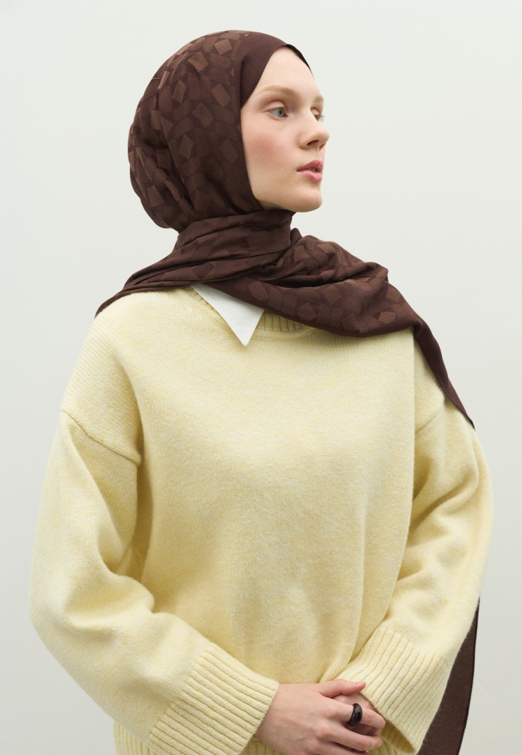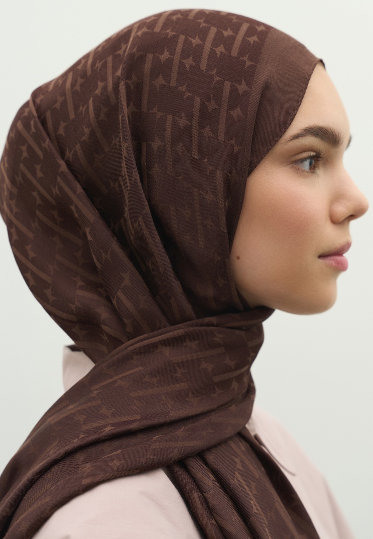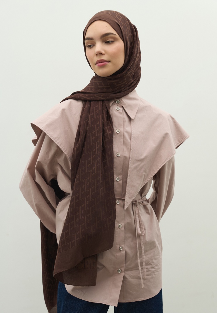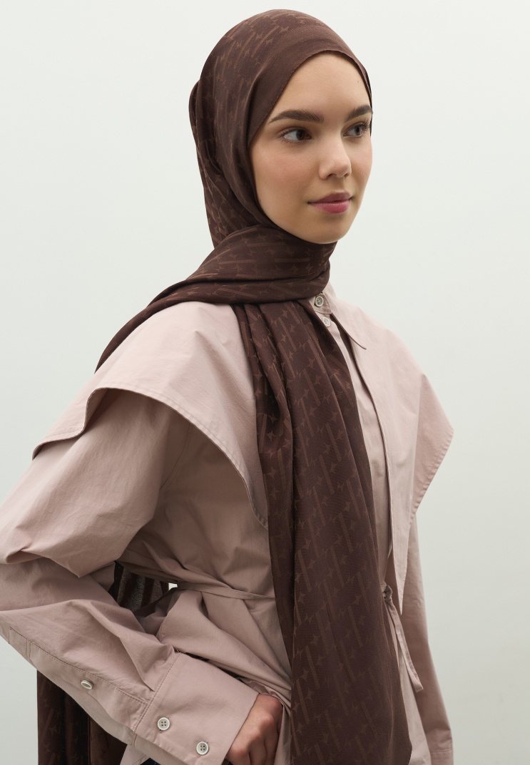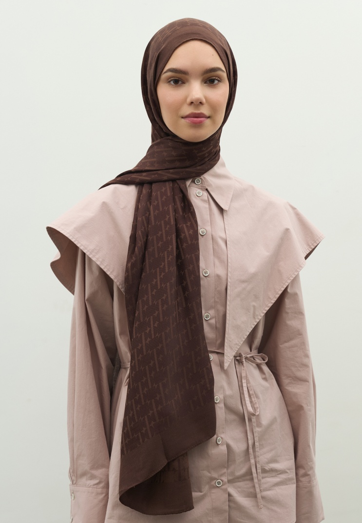 MONOGRAM PAMUK FLOŞ JAKARLI ŞAL ÇİKOLATA KAHVE
