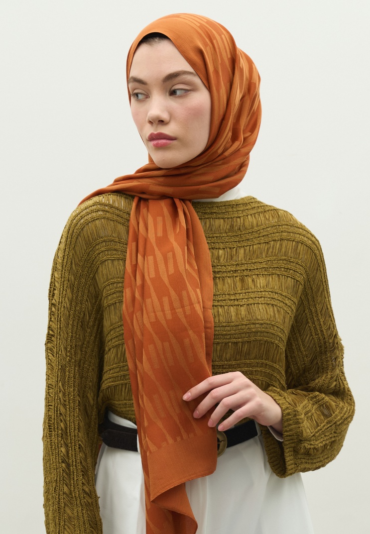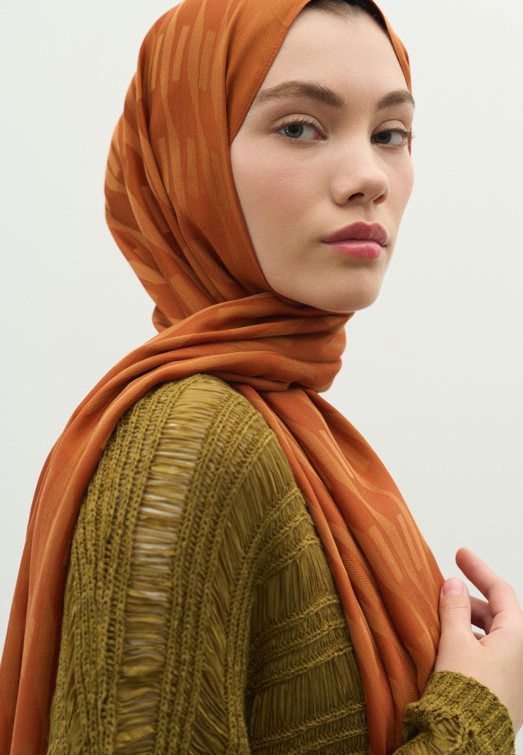NARA COTTON FLOSH JACQUARD HIJAB CINNAMON BAR