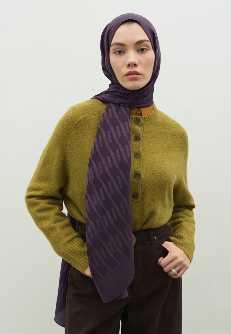 NARA COTTON FLOSH JACQUARD HIJAB EGGPLANT PURPLE