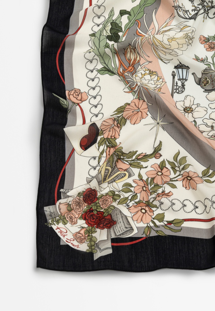 Doğal yapısı, akışkan duruşu, ipek hissi veren ve nefes alabilen dokusu ile gün boyu konfor sağlayan viskon kumaşı, masal dünyasından ilham alınan romantik desenler ile buluşturan Letters Of Pure Love Eşarp Koleksiyonu, her eşarbı eşsiz bir hikaye ile size sunar.