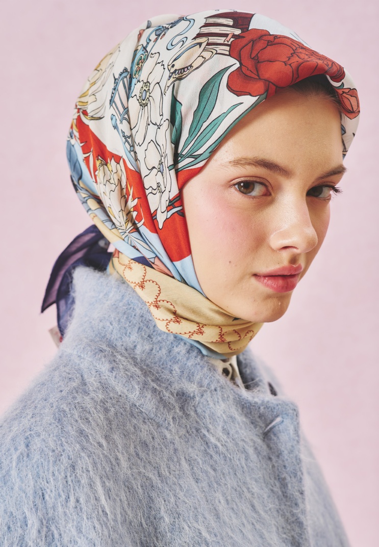 Doğal yapısı, akışkan duruşu, ipek hissi veren ve nefes alabilen dokusu ile gün boyu konfor sağlayan viskon kumaşı, masal dünyasından ilham alınan romantik desenler ile buluşturan Letters Of Pure Love Eşarp Koleksiyonu, her eşarbı eşsiz bir hikaye ile size sunar.