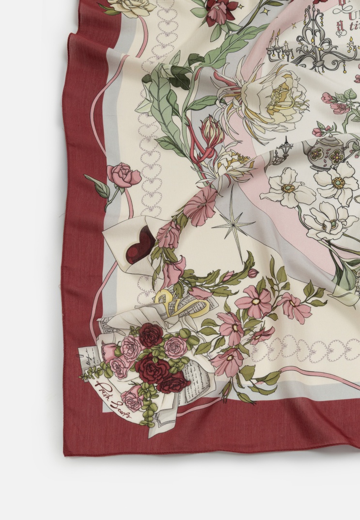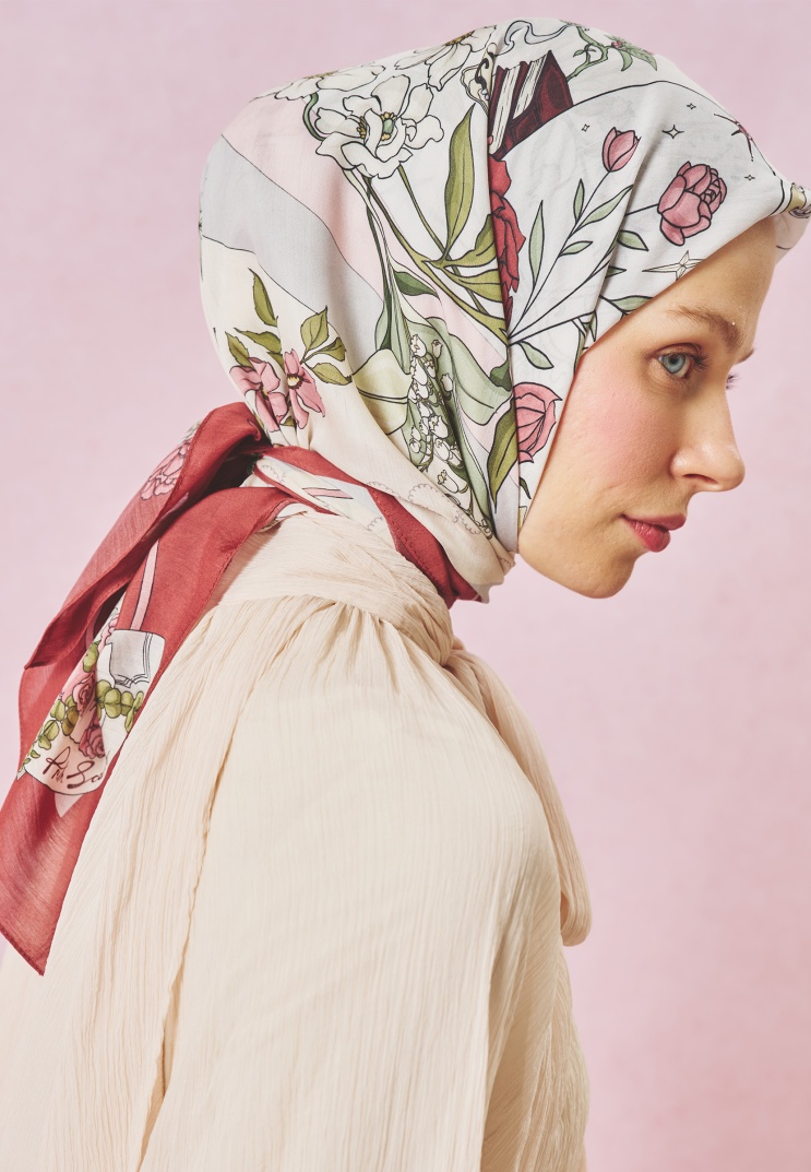 Doğal yapısı, akışkan duruşu, ipek hissi veren ve nefes alabilen dokusu ile gün boyu konfor sağlayan viskon kumaşı, masal dünyasından ilham alınan romantik desenler ile buluşturan Letters Of Pure Love Eşarp Koleksiyonu, her eşarbı eşsiz bir hikaye ile size sunar.