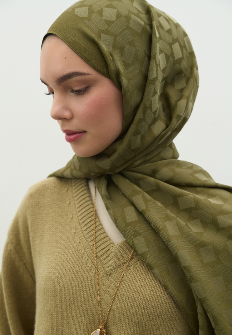 OSLO COTTON JACQUARD FLOSH HIJAB OLIVE GREEN