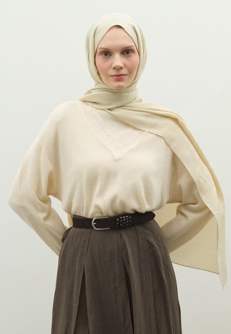 OSLO PAMUK FLOŞ JAKARLI ŞAL BEJ